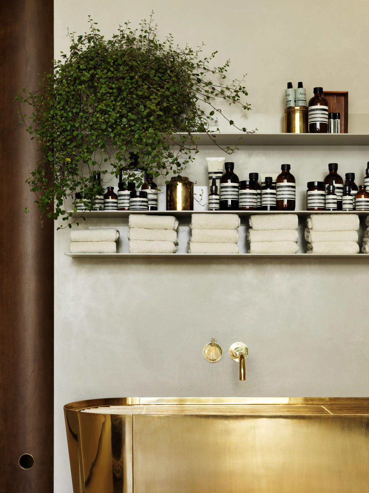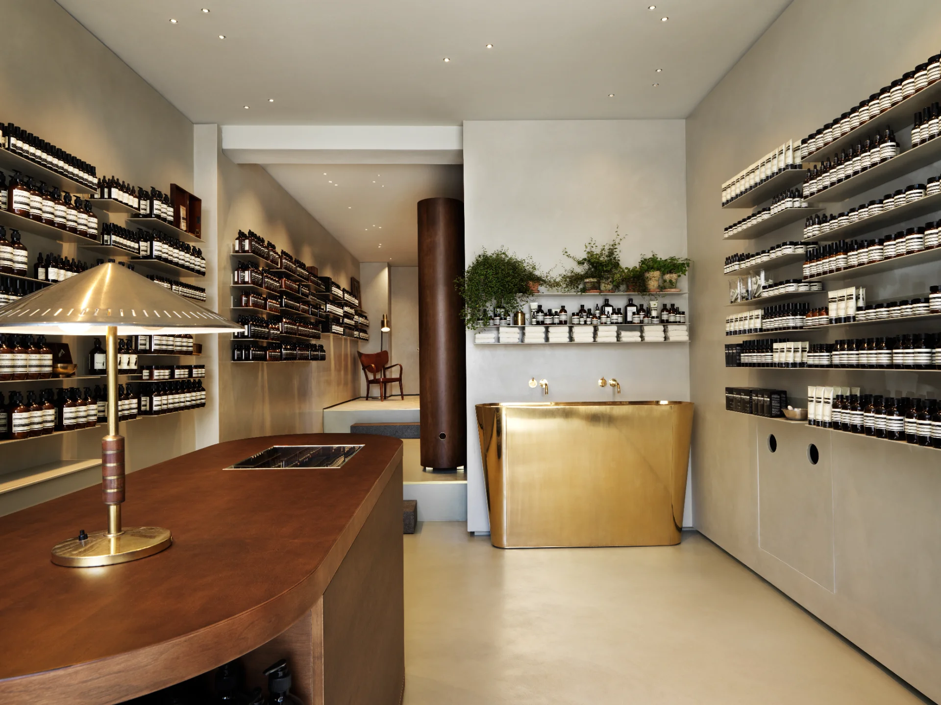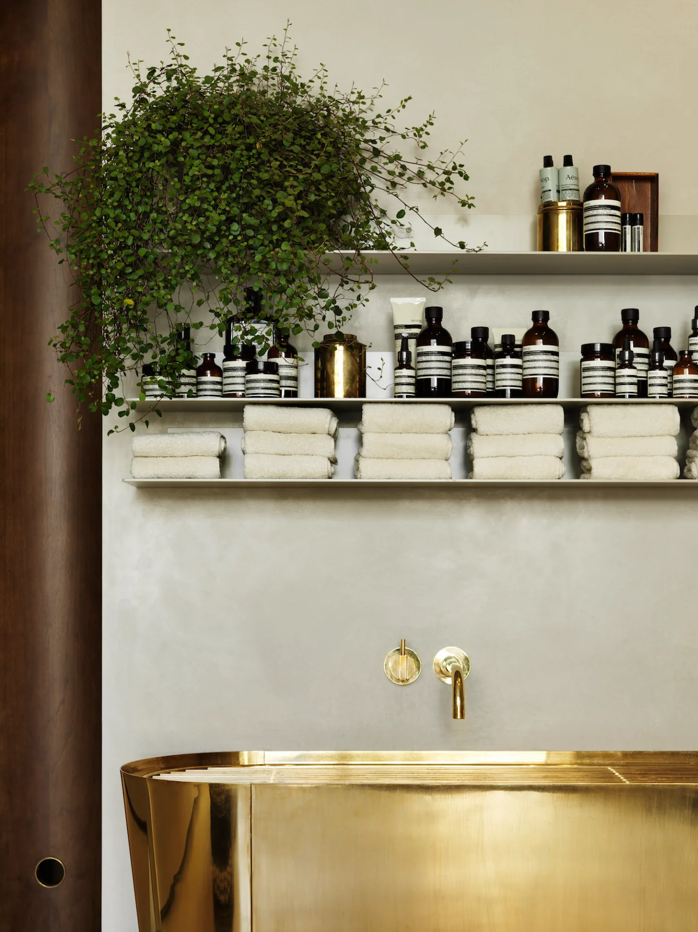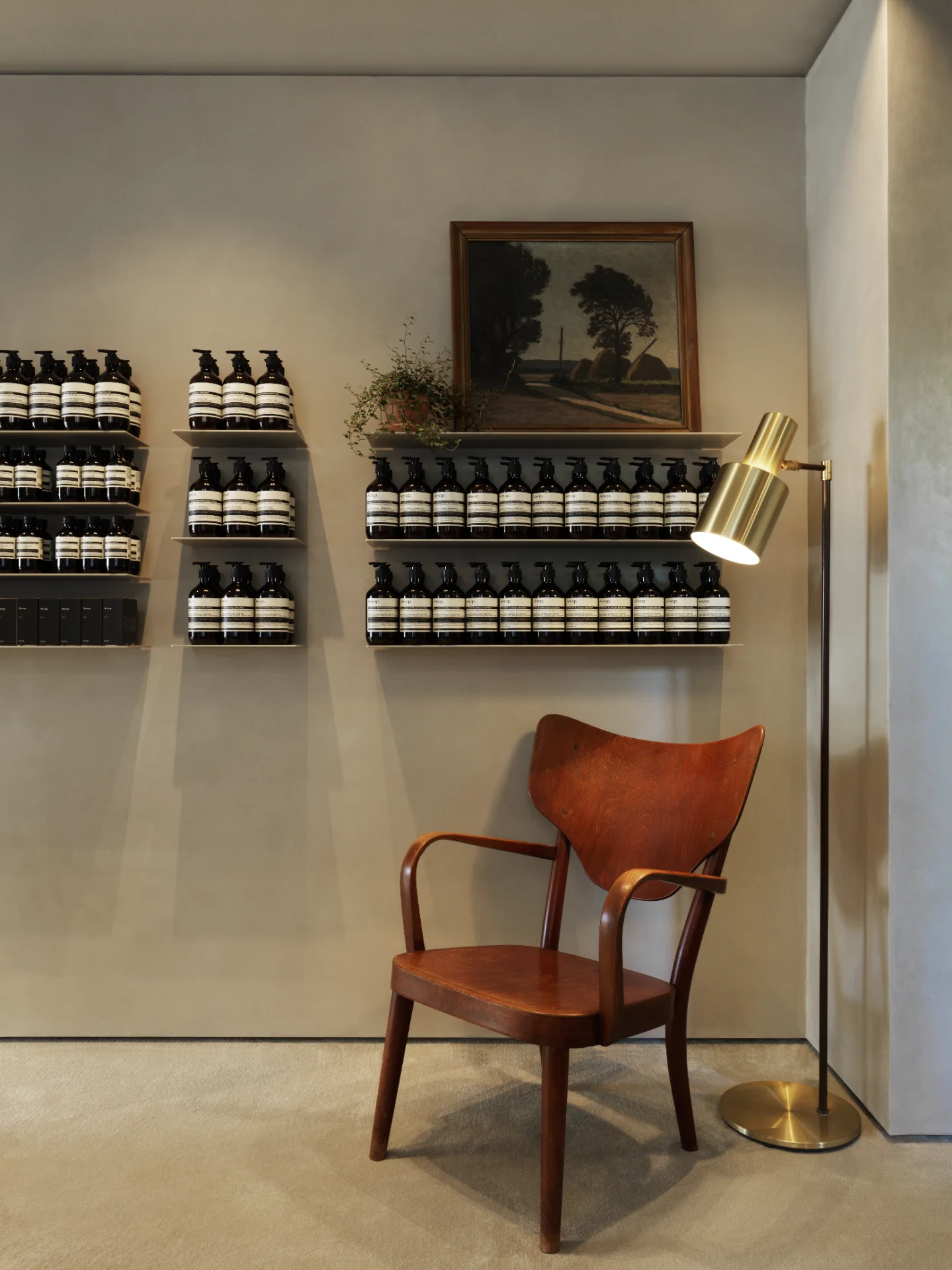 Studioilse consulted us early in the project when they first found the space on the iconic, French-tinged street in Copenhagen, and we quickly helped work out solutions to the downplayed luxury of their first Copenhagen shop. Our team built out the old walls, leaving a bold shadow gap in place of baseboards, which aside from being a lovely detail ensured breathability around the old structures. We worked with stonecutters for the stepping stones, drew up and coordinated fabrication of all the metalwork, including razor-thin steel shelving and the oversized brass wash basin, installed the constellation-style lighting system, and sourced and fitted an antique radiator along the window.