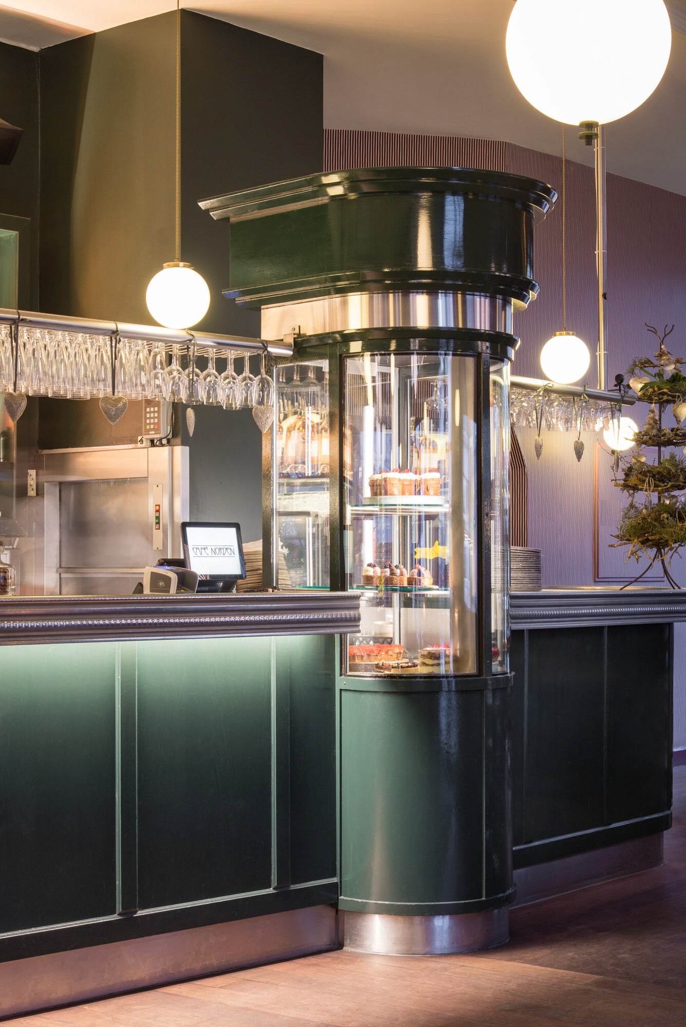 In co-operation with Cafe Norden, we have been responsible for the rebuilding of the legendary cafe situated in the center of Copenhagen. Cafe Norden wanted an update of their existing expression. In this context we dismantled their bar and in our workshop we transformed it covering it with oak veneer. We built a new mirror back wall with floating glass shelves to illuminate the bottles.