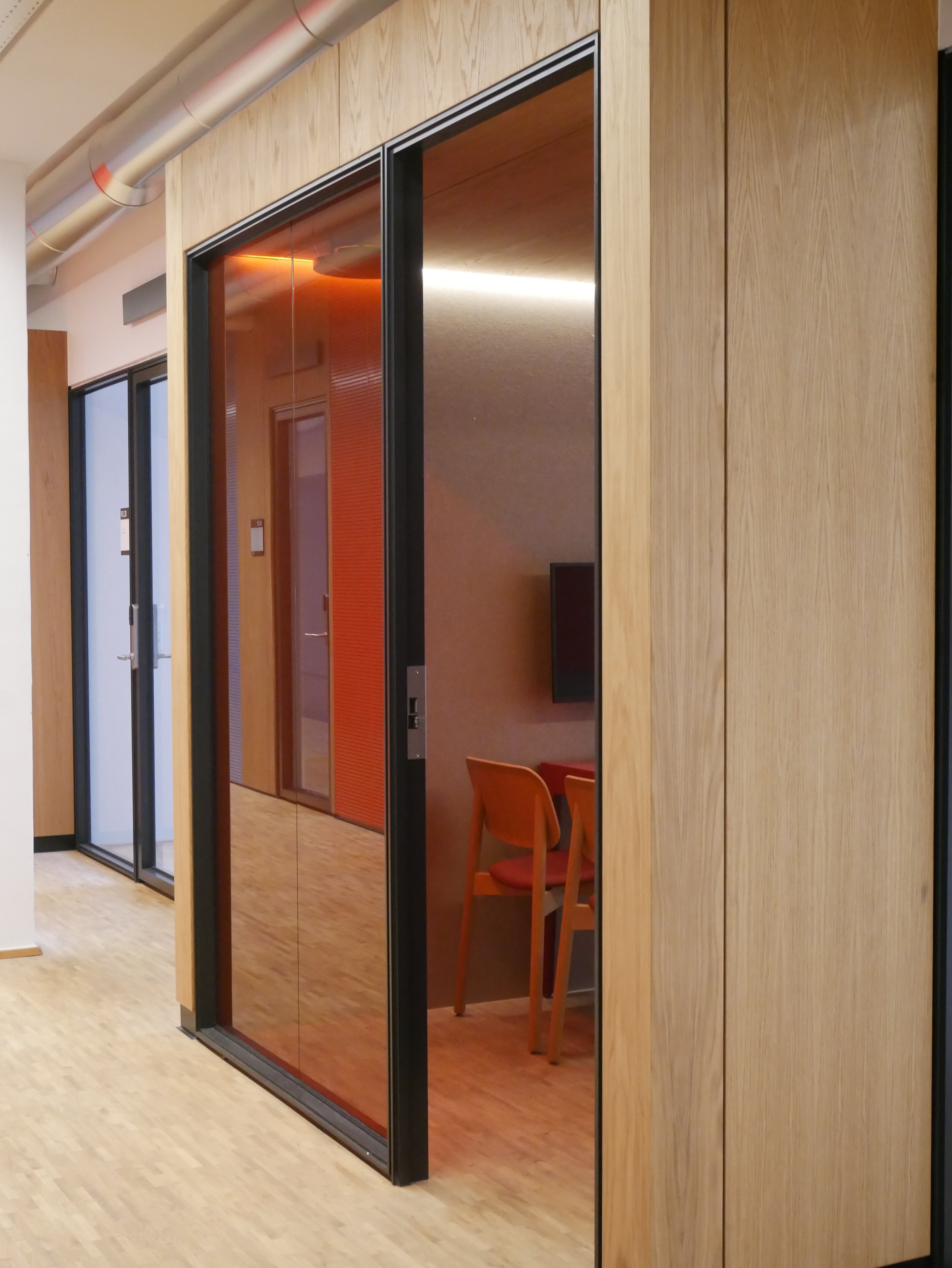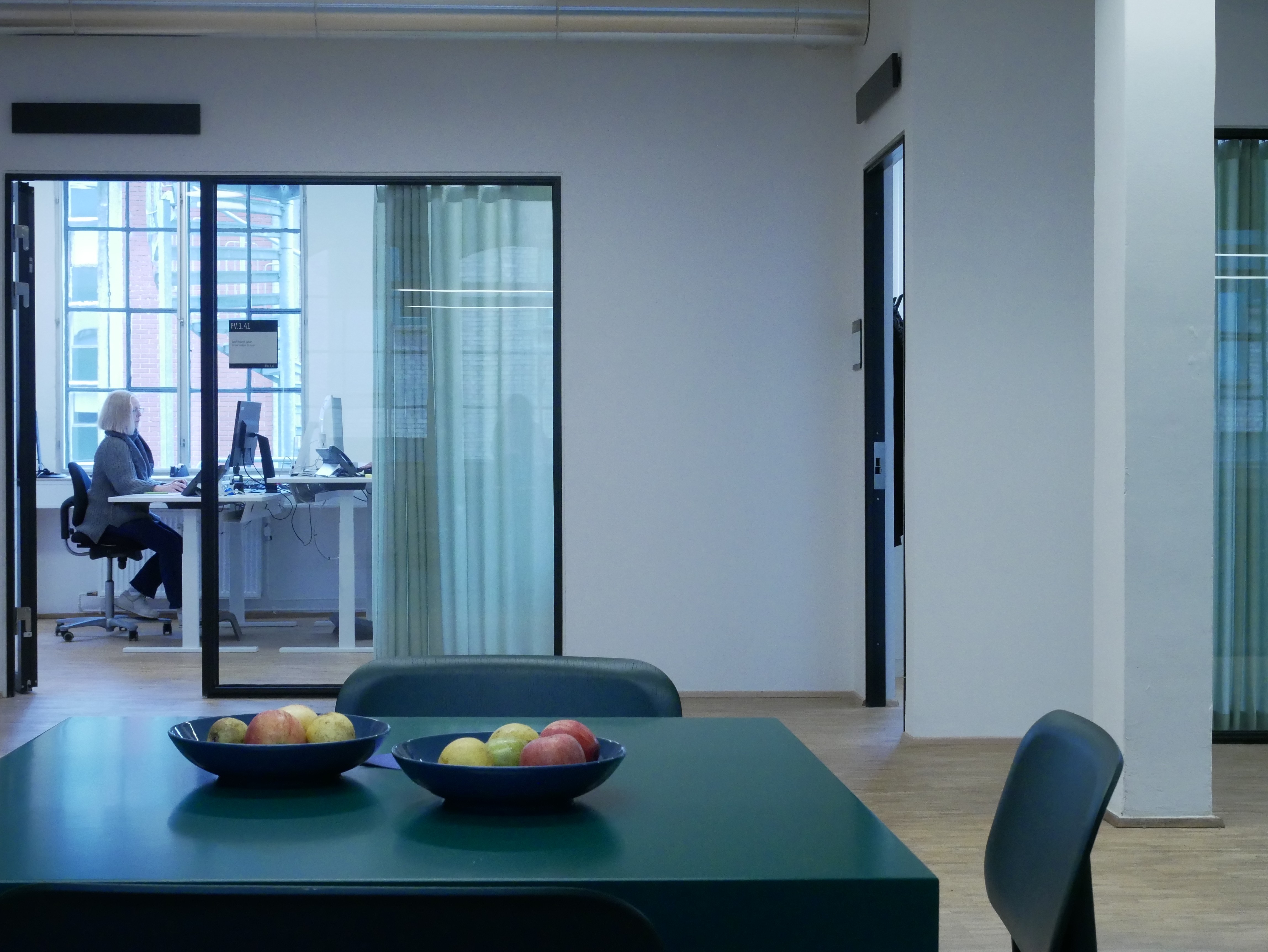 The client asked for an inspiring environment with natural light, good acoustics, bespoke furniture, lively colours and transparency. Mix of dedicated spaces for focused work and need for silence and visual focus and spaces that promote social interaction and knowledge sharing.
