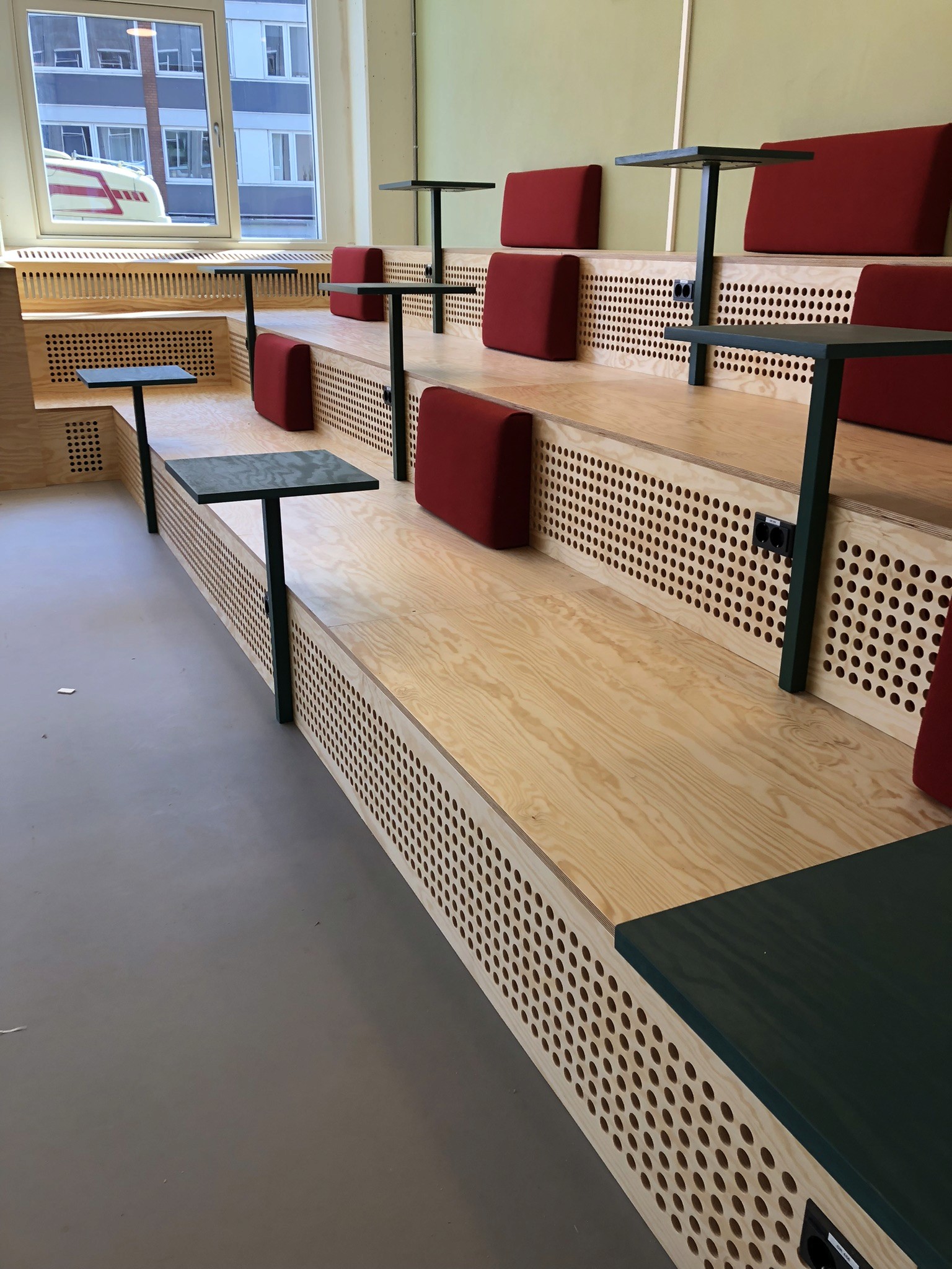 We were brought on long before conception, and began by organizing user involvement workshops to get a sense for what students, teachers and other faculty members’ needs and desires were. Through dialogue and activities, we discovered a lack of informal and flexible spaces on campus, private spaces for examinations, for group work, for gatherings, spaces to be alone in those anxious moments before tests, to celebrate with family just after.