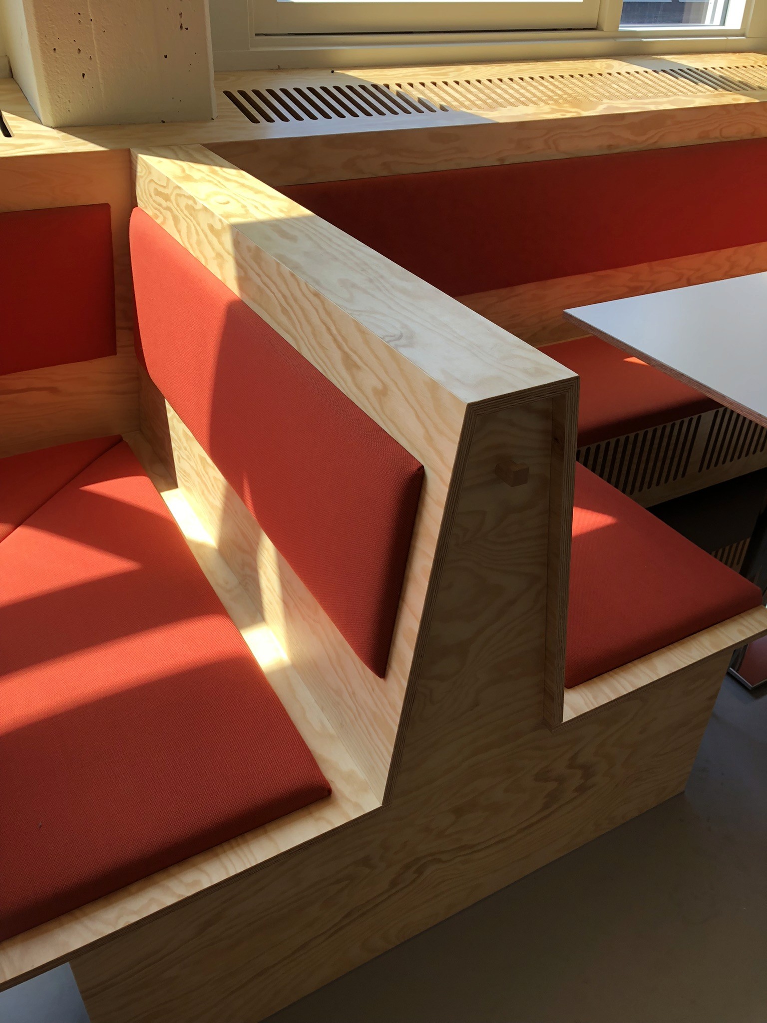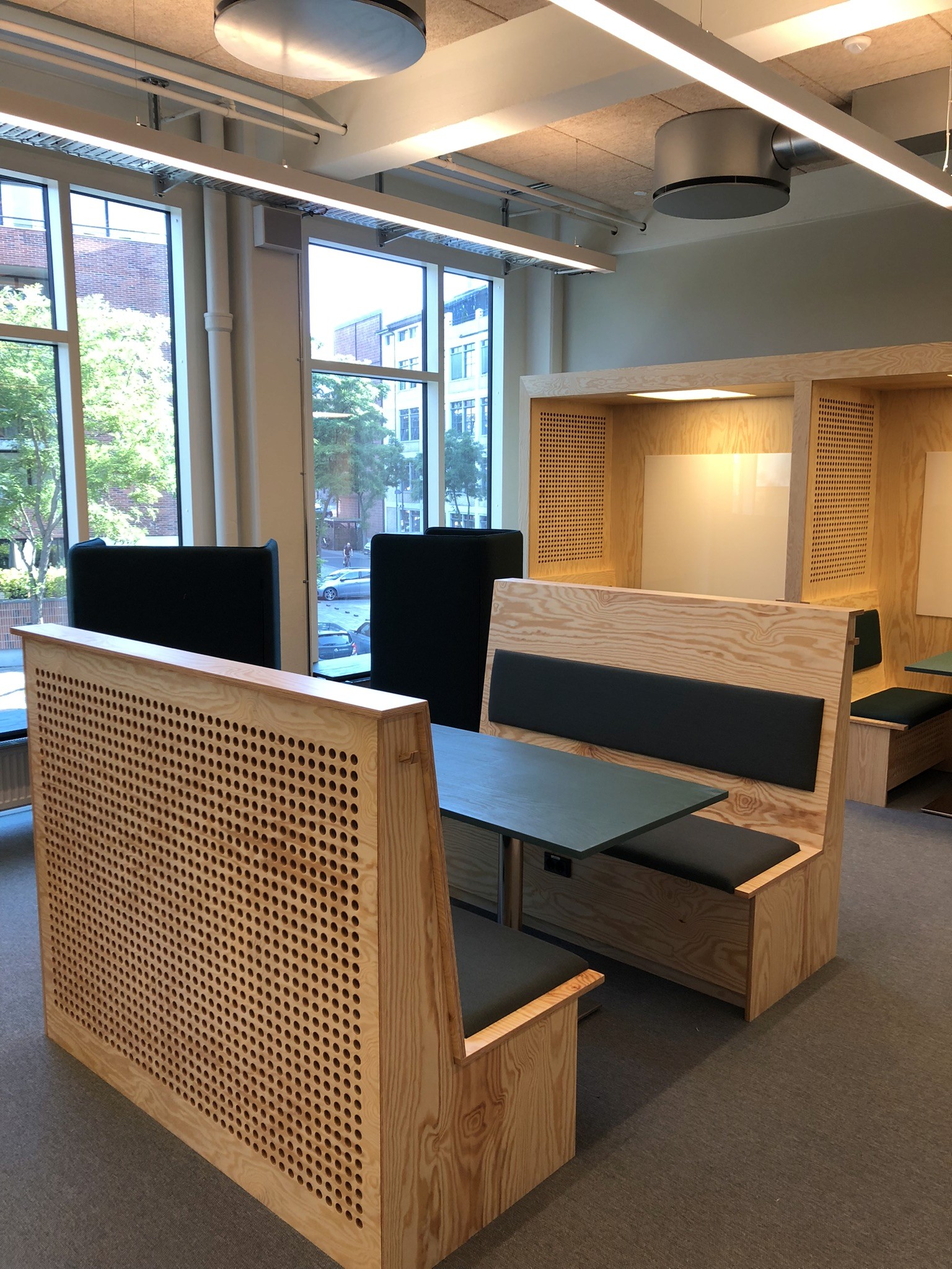 From there we established an identity for the building, which CBS insisted should draw inspiration from the palette of other buildings on campus. With this as our foundation, we designed a series of flexible, modular furniture that can be connected and separated ad hoc.