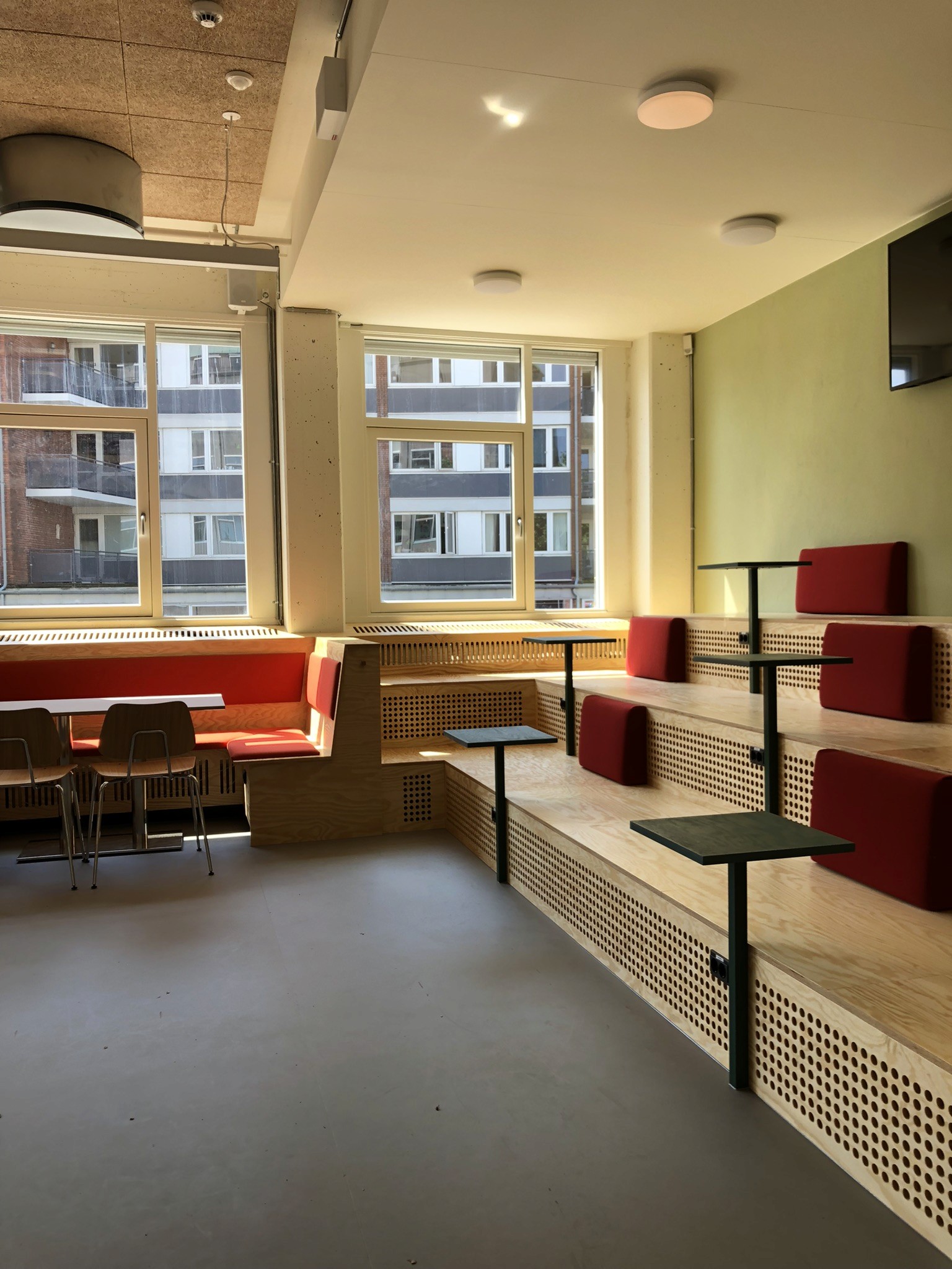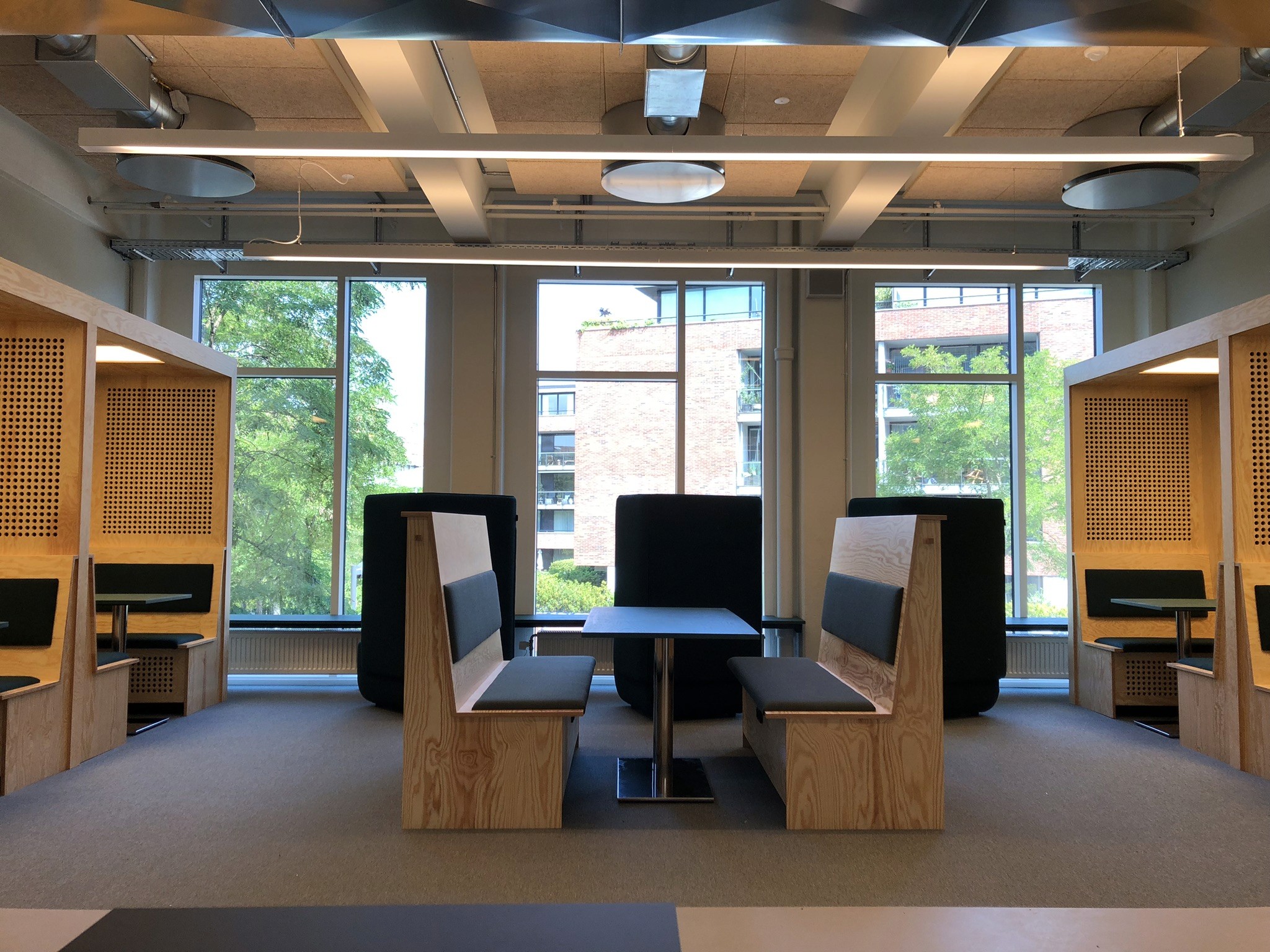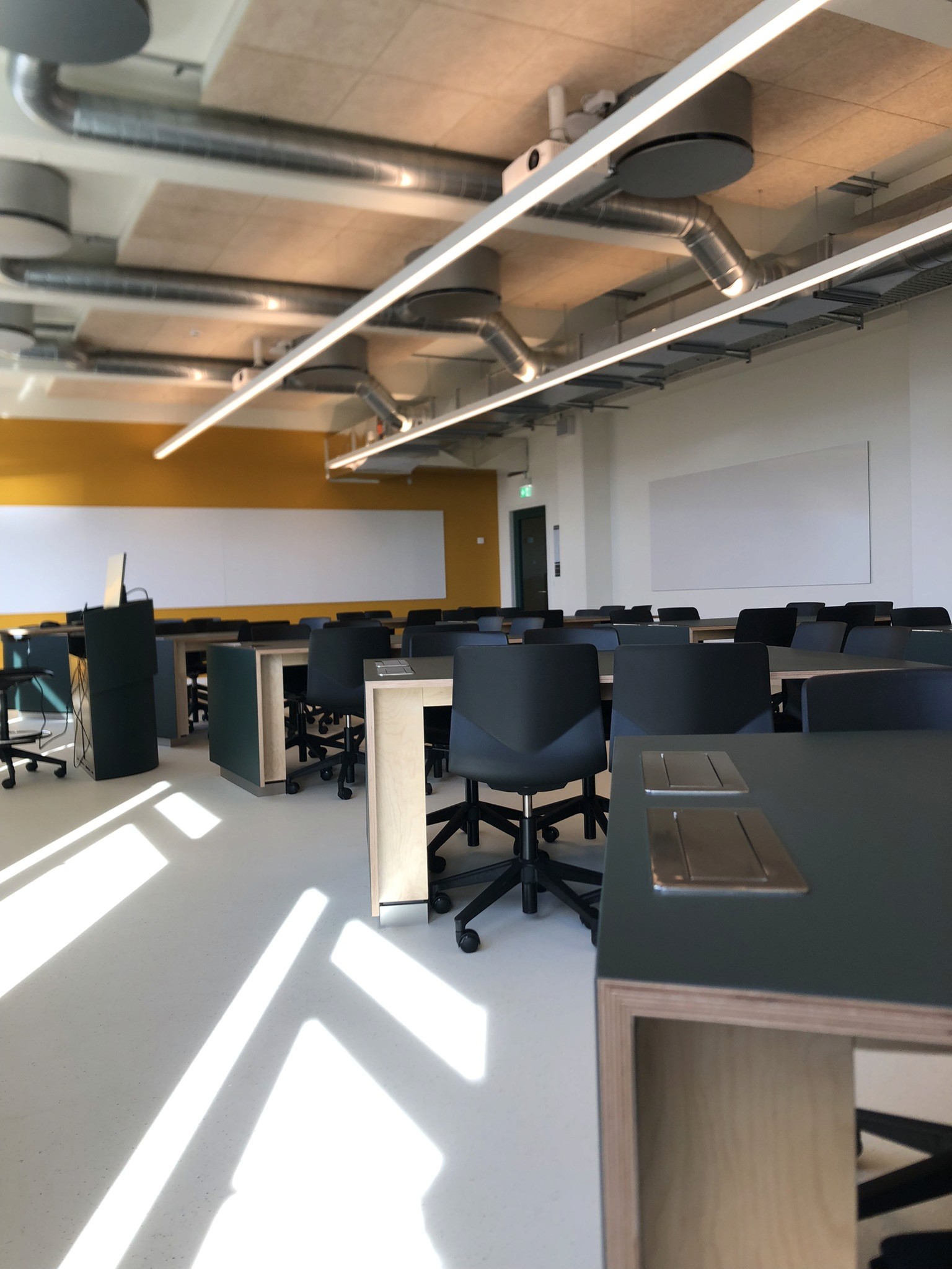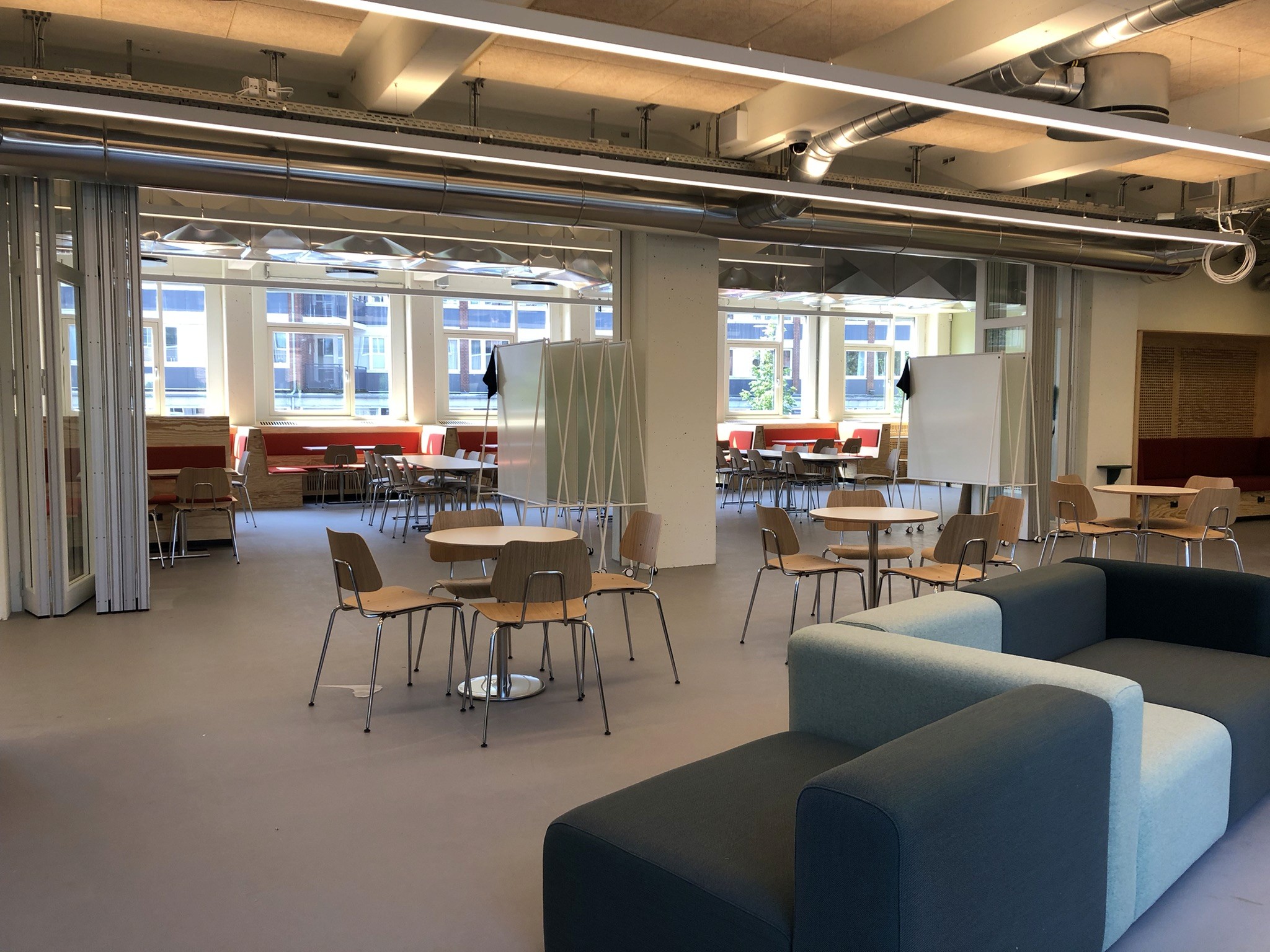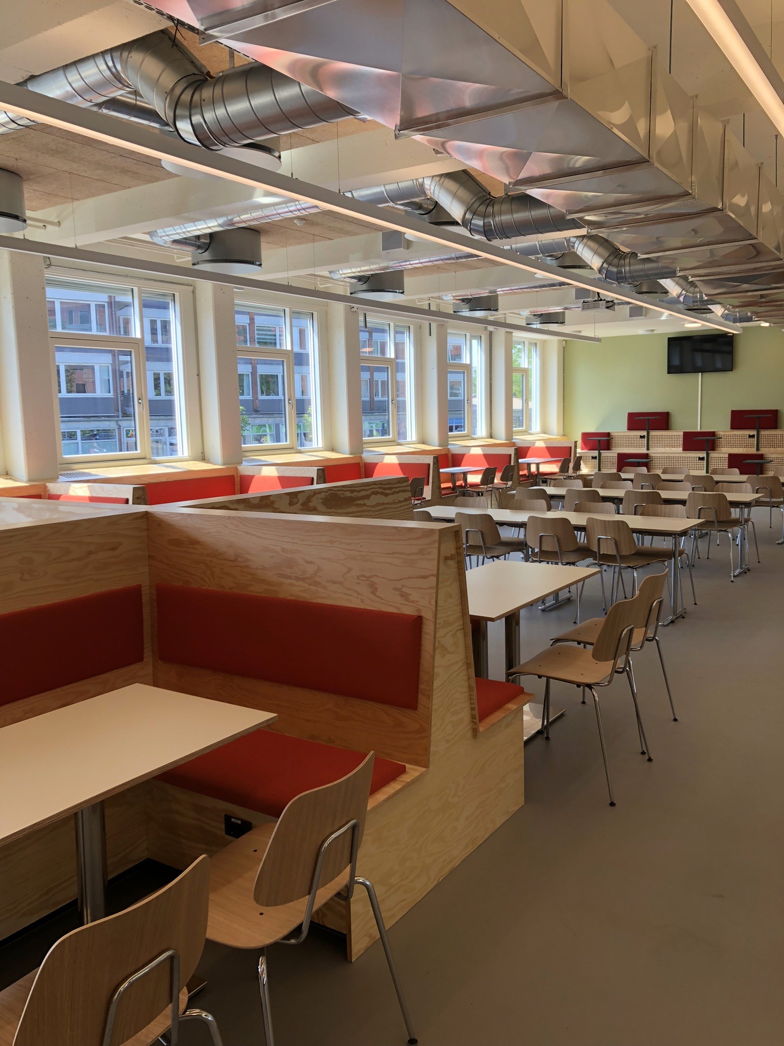 After years of tight and frequent collaboration with Copenhagen Business School we were put in charge of a total renovation of an old factory, which we repurposed into five full floors of new facilities for teaching, exam-taking, group-work and social events.