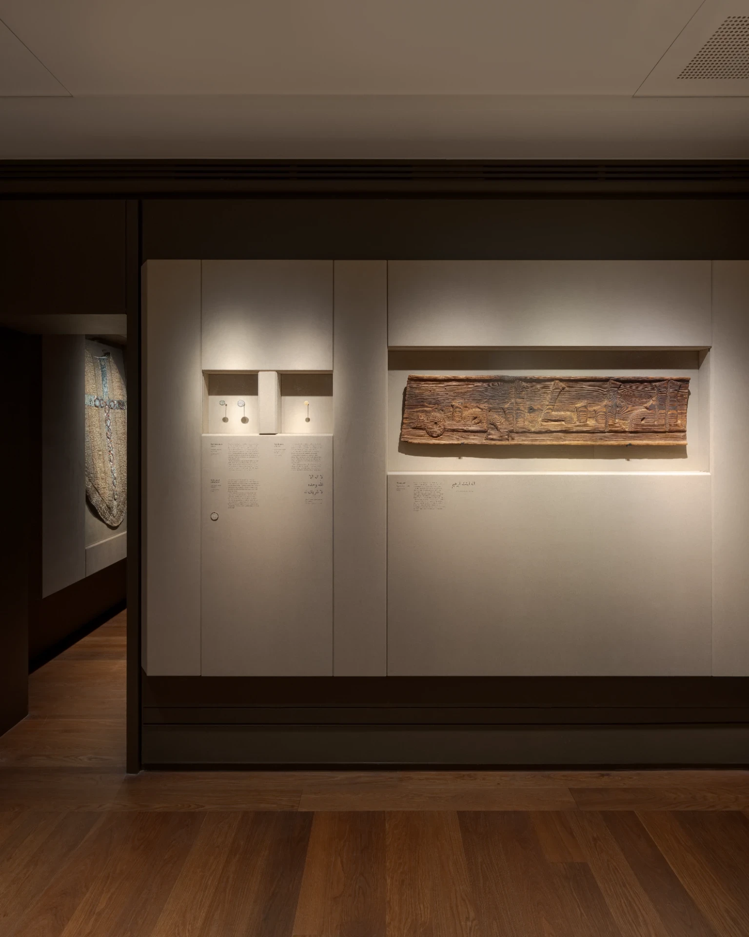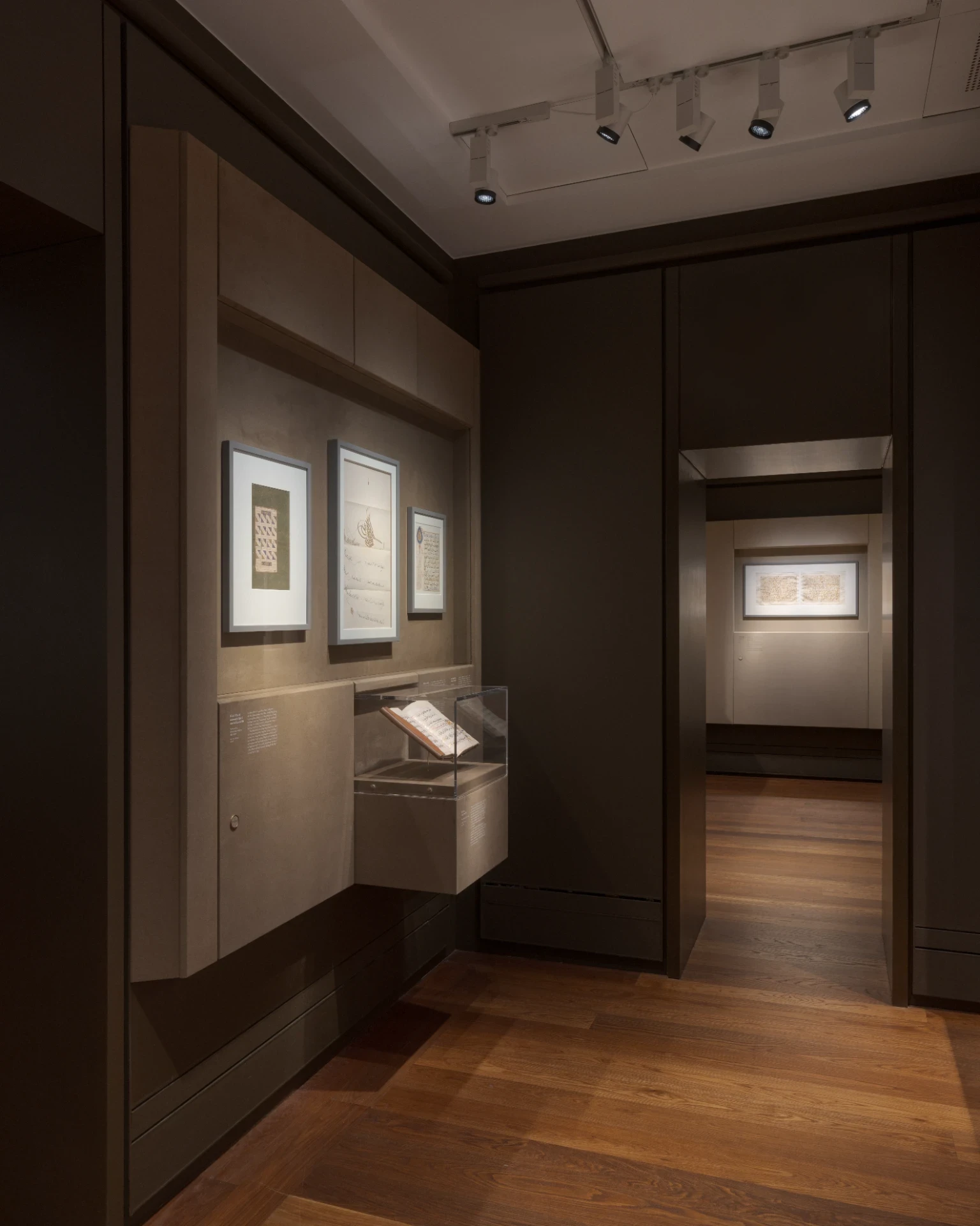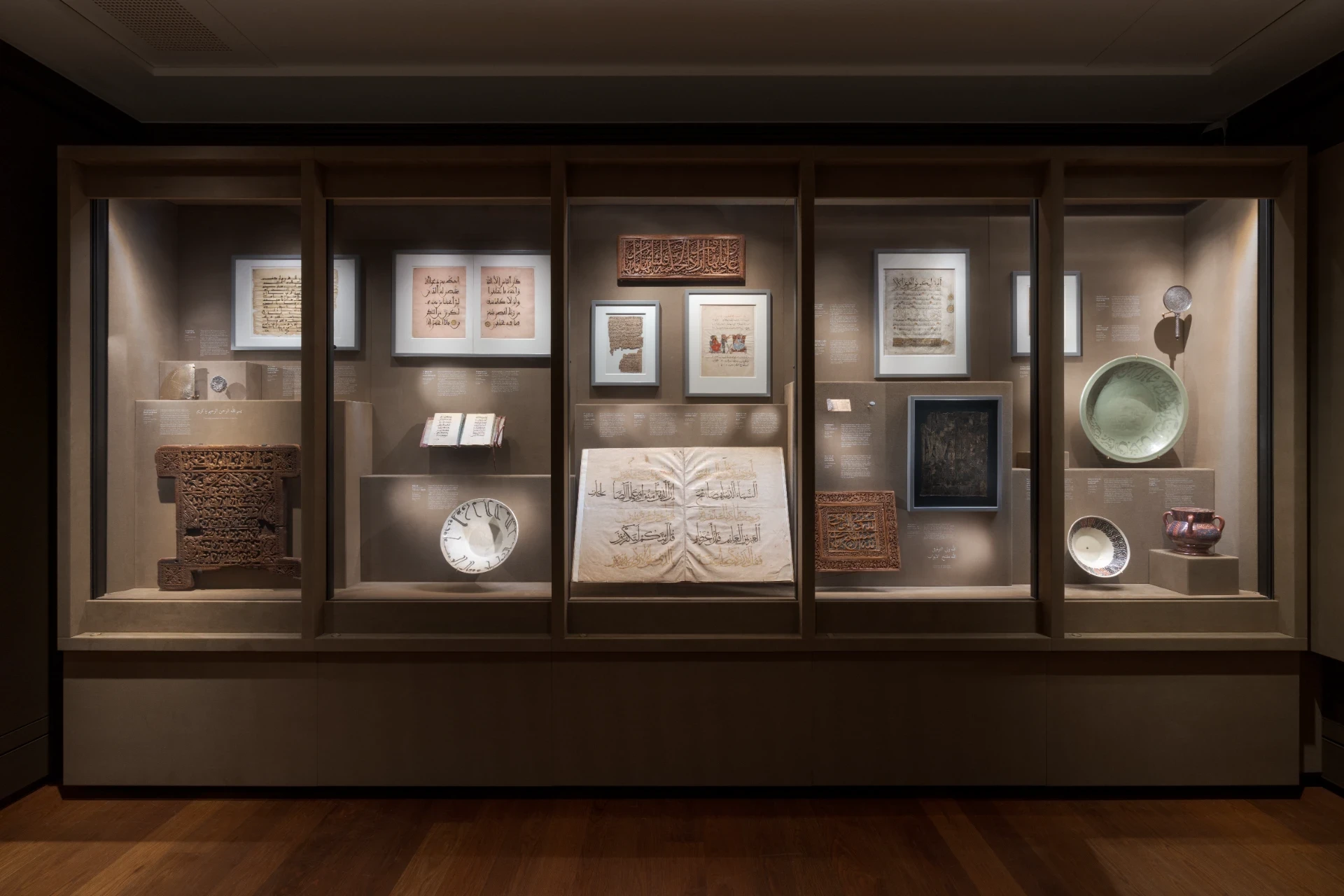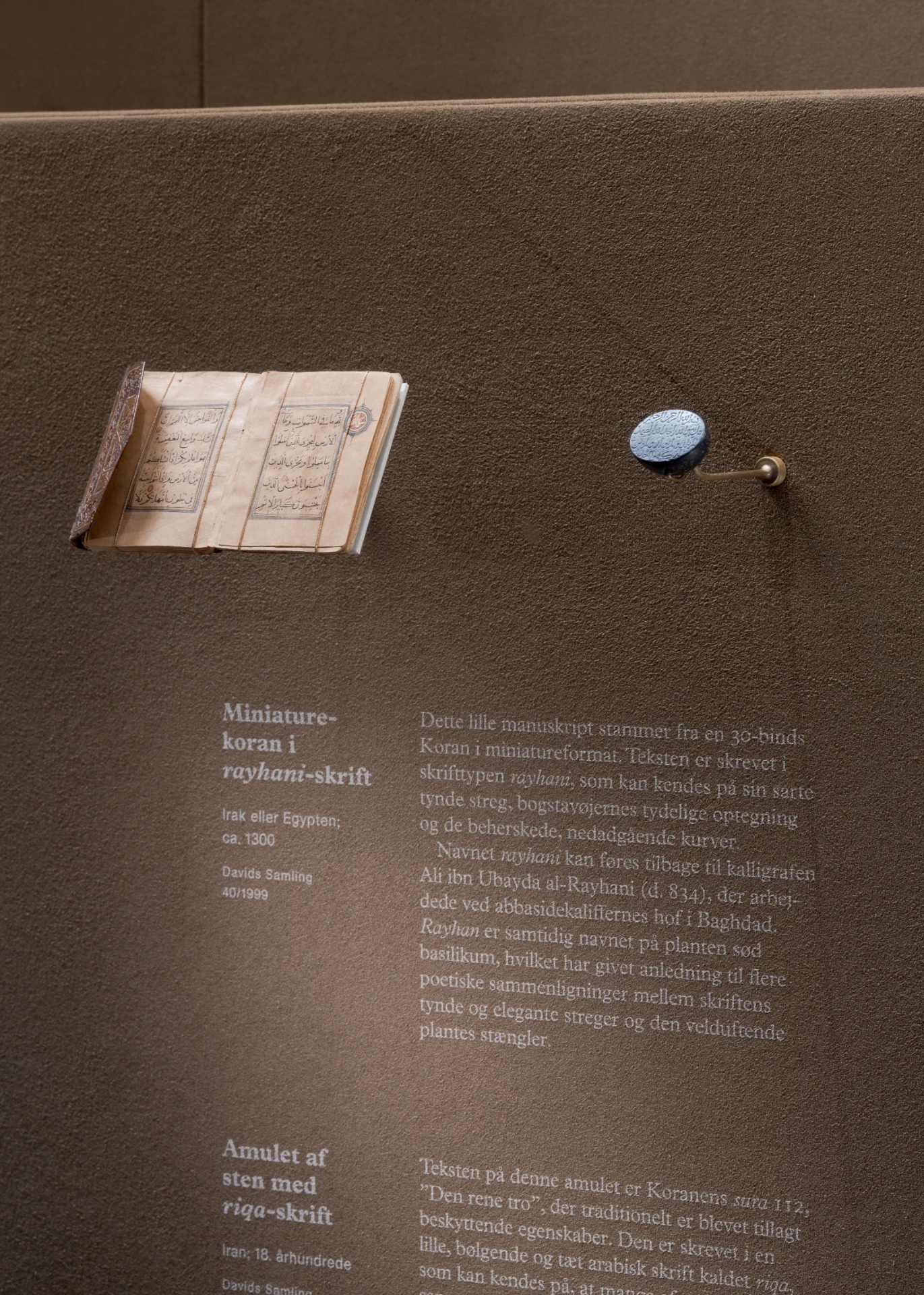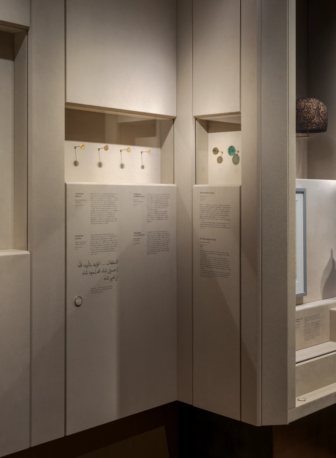 Boasting a table with the same area as a small bedroom, vitrines large enough to encase a standing woman, enough intricate printwork to fill volumes, and over 800 suedette panels, the simple sophistication of this space belies its grander aspects. A collaboration with Mentze Ottenstein architects, we detailed, built and installed this tenebristic exhibition of Arabic artifacts. Being one of the finest collections of Islamic art in the west, the challenge was to build around the highly rigorous material standards to uphold conservation and security. The soft luxury of the displays served as a worthy backdrop to the priceless pieces on display.