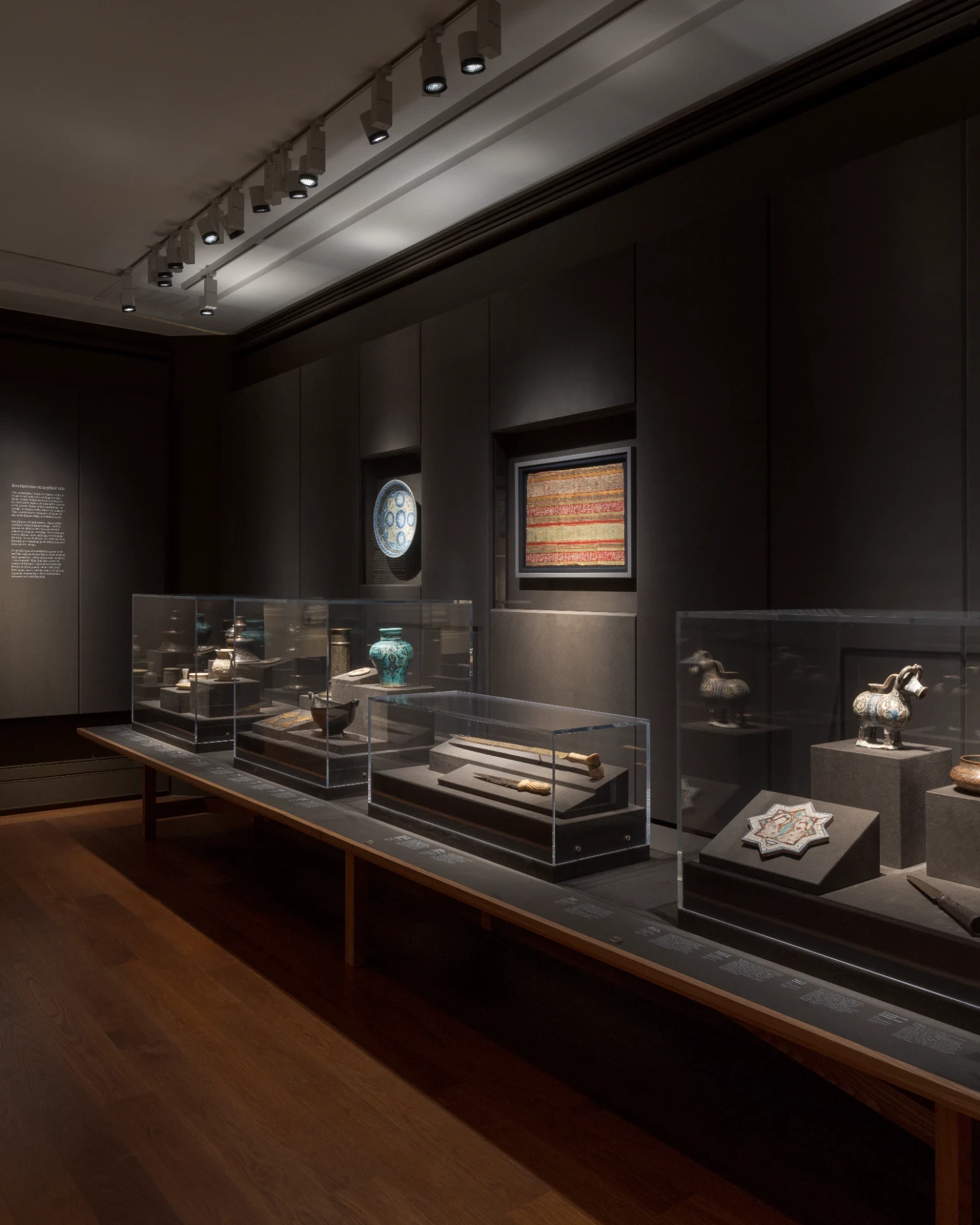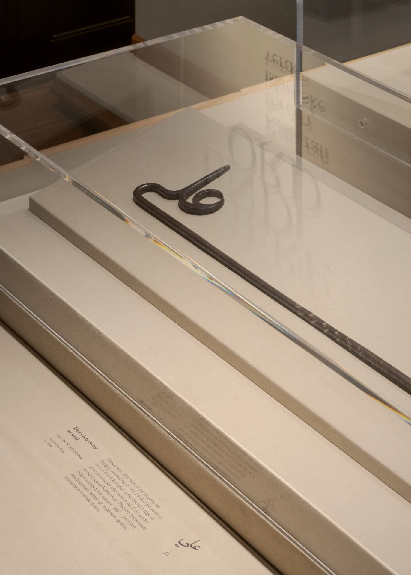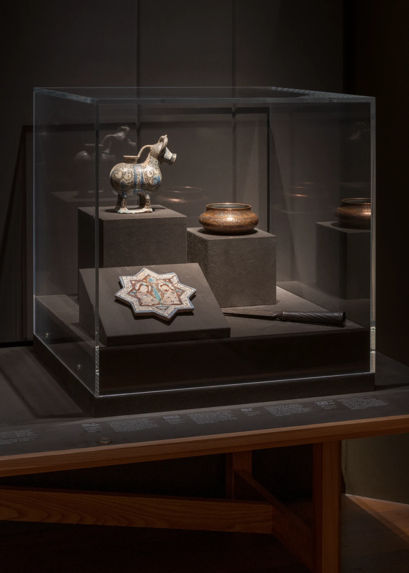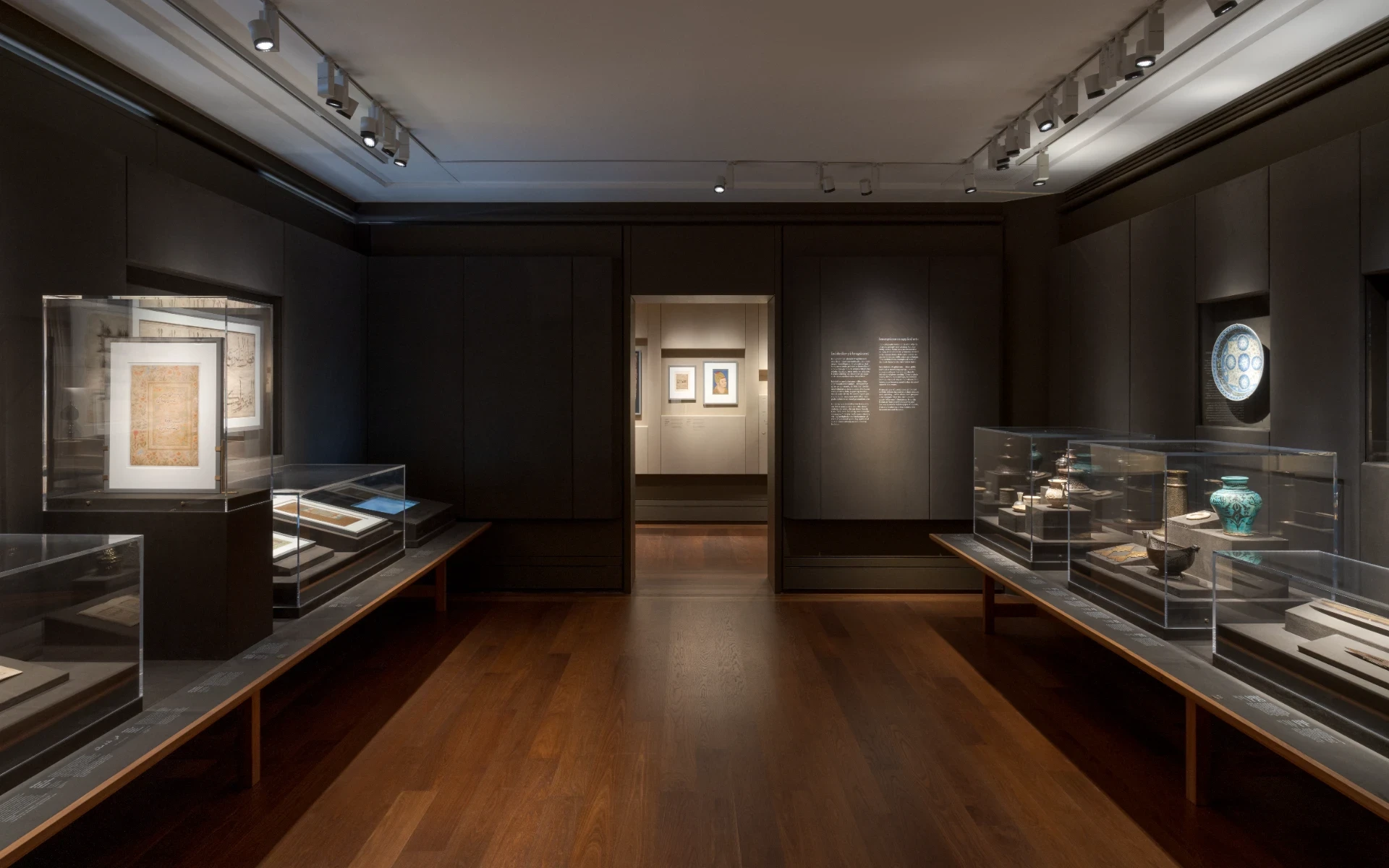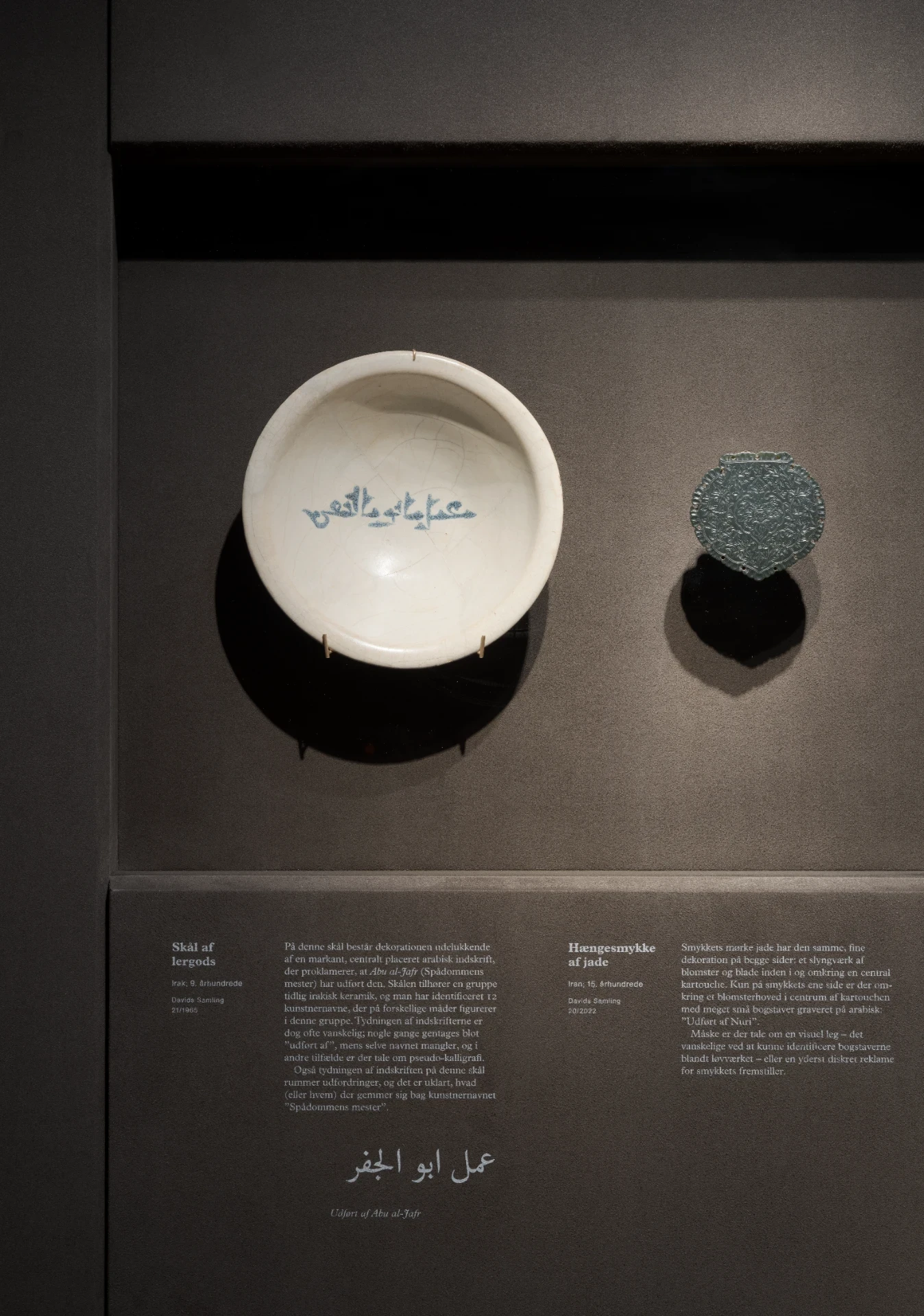 Boasting a table with the same area as a small bedroom, vitrines large enough to encase a standing woman, enough intricate printwork to fill volumes, and over 800 suedette panels, the simple sophistication of this space belies its grander aspects. A collaboration with Mentze Ottenstein architects, we detailed, built and installed this tenebristic exhibition of Arabic artifacts. Being one of the finest collections of Islamic art in the west, the challenge was to build around the highly rigorous material standards to uphold conservation and security. The soft luxury of the displays served as a worthy backdrop to the priceless pieces on display.