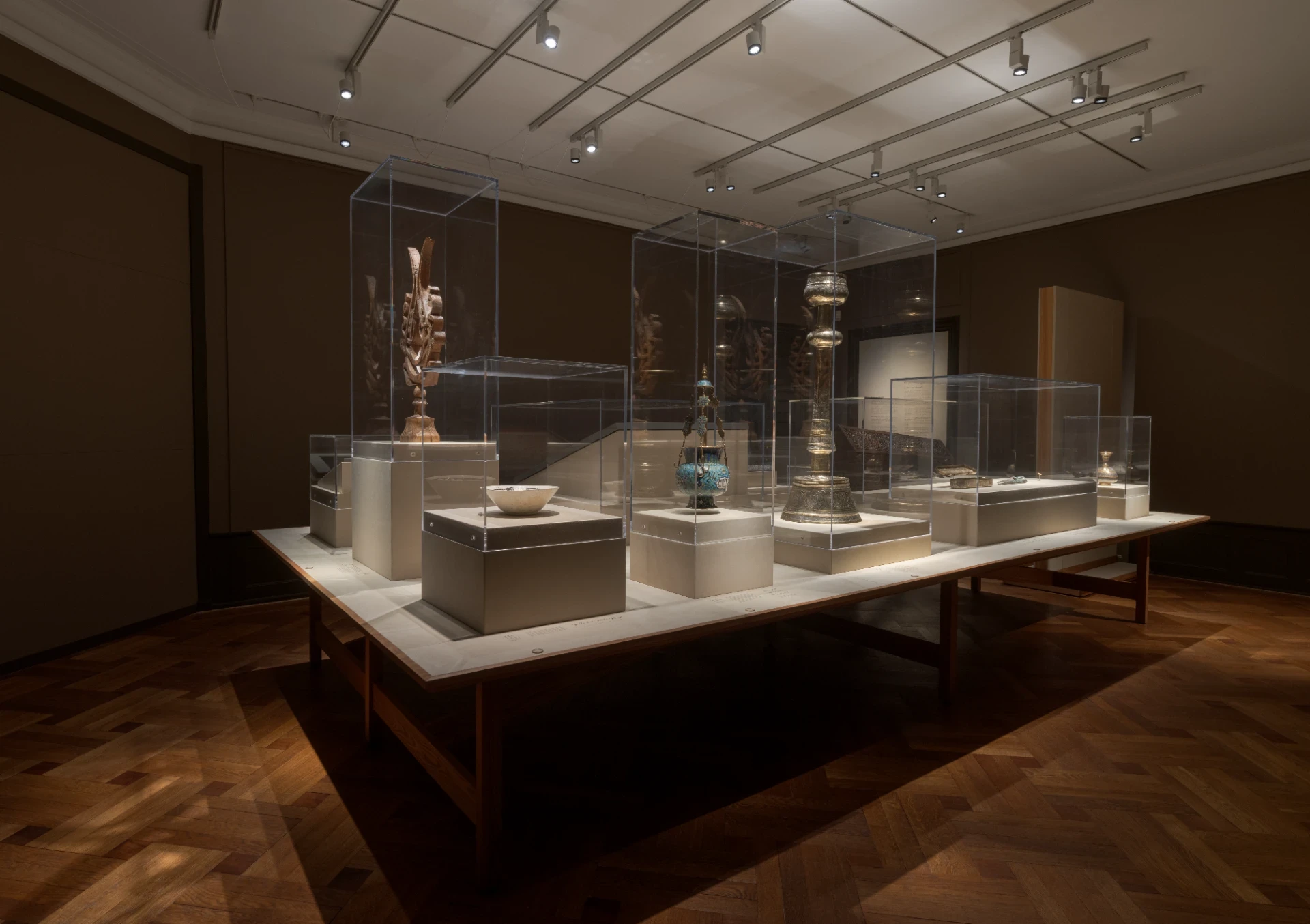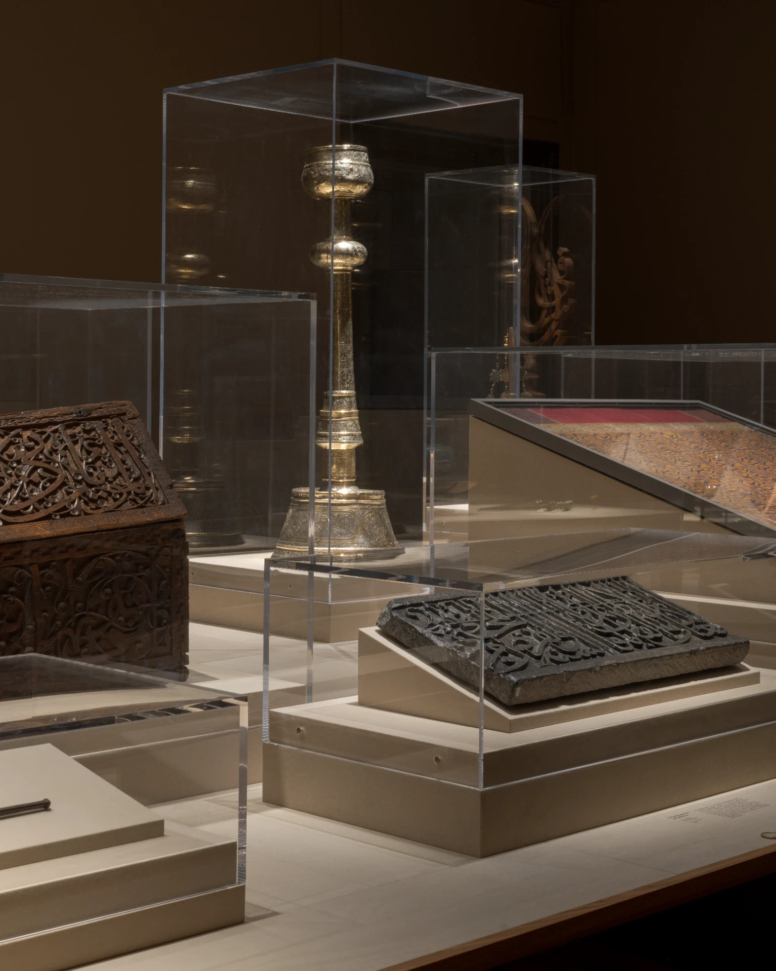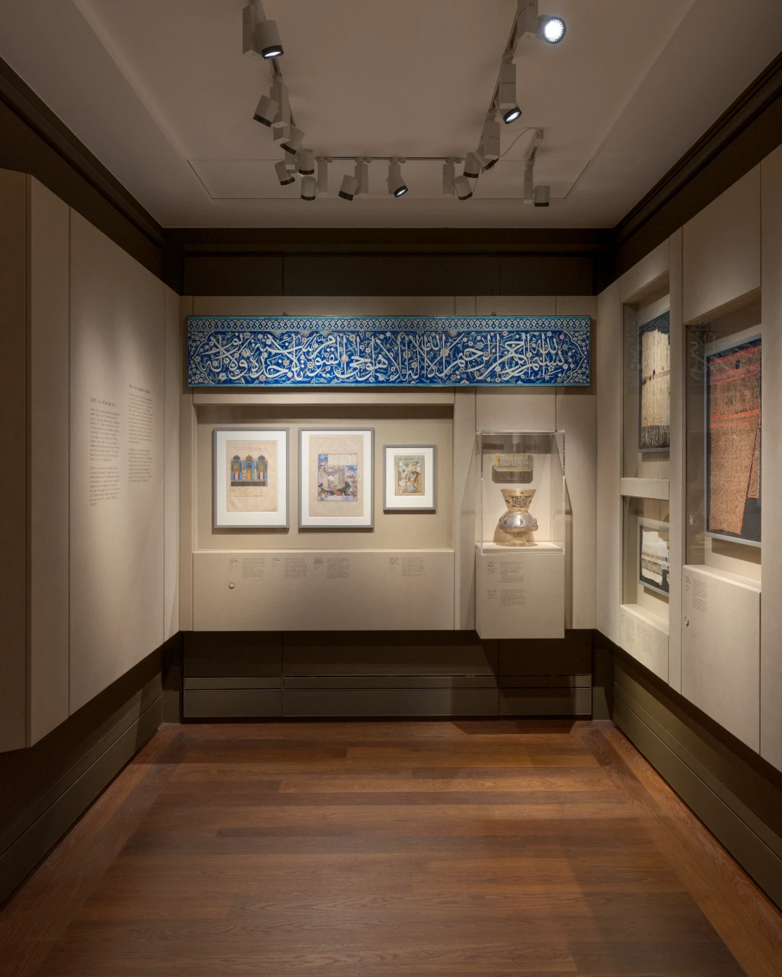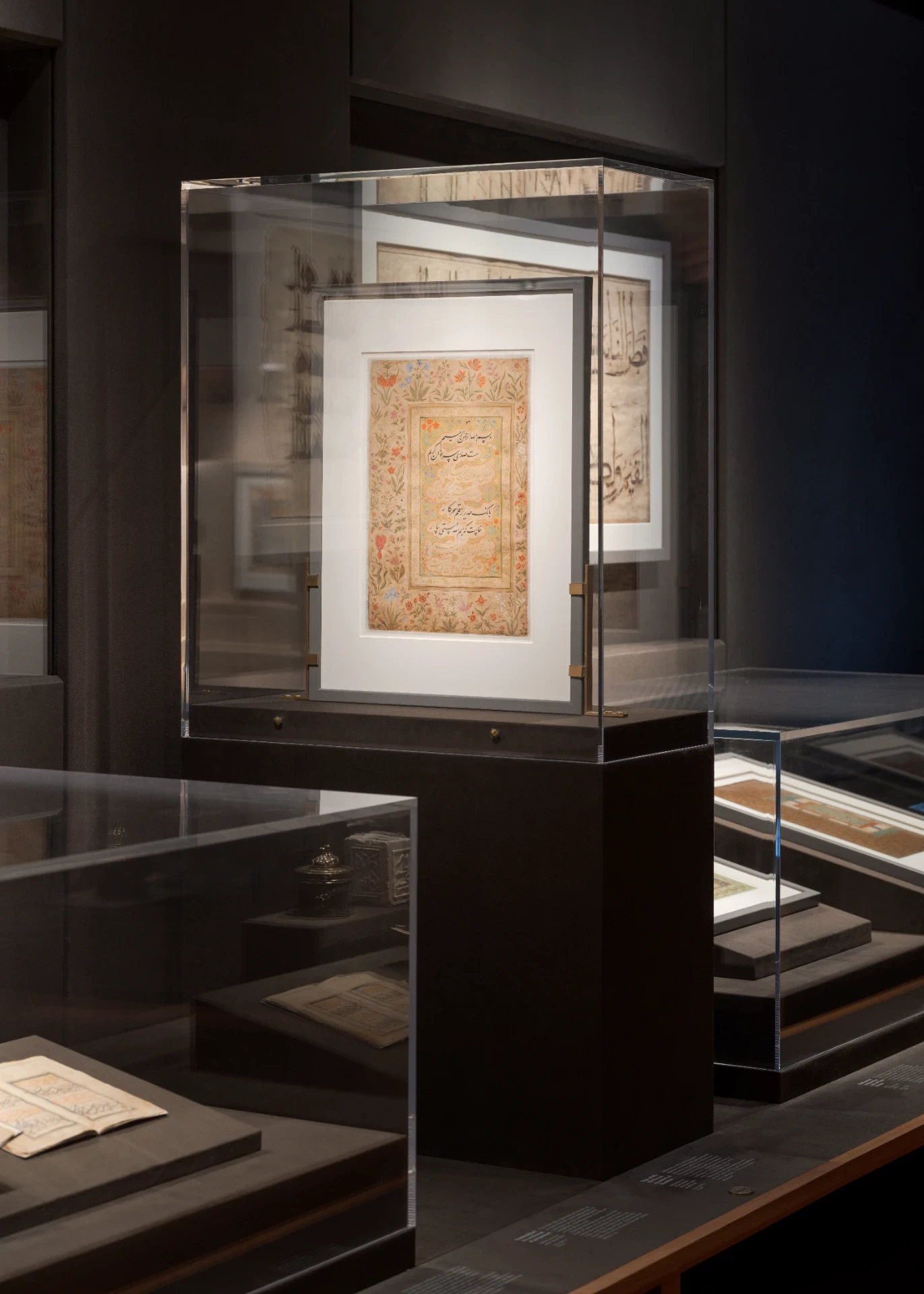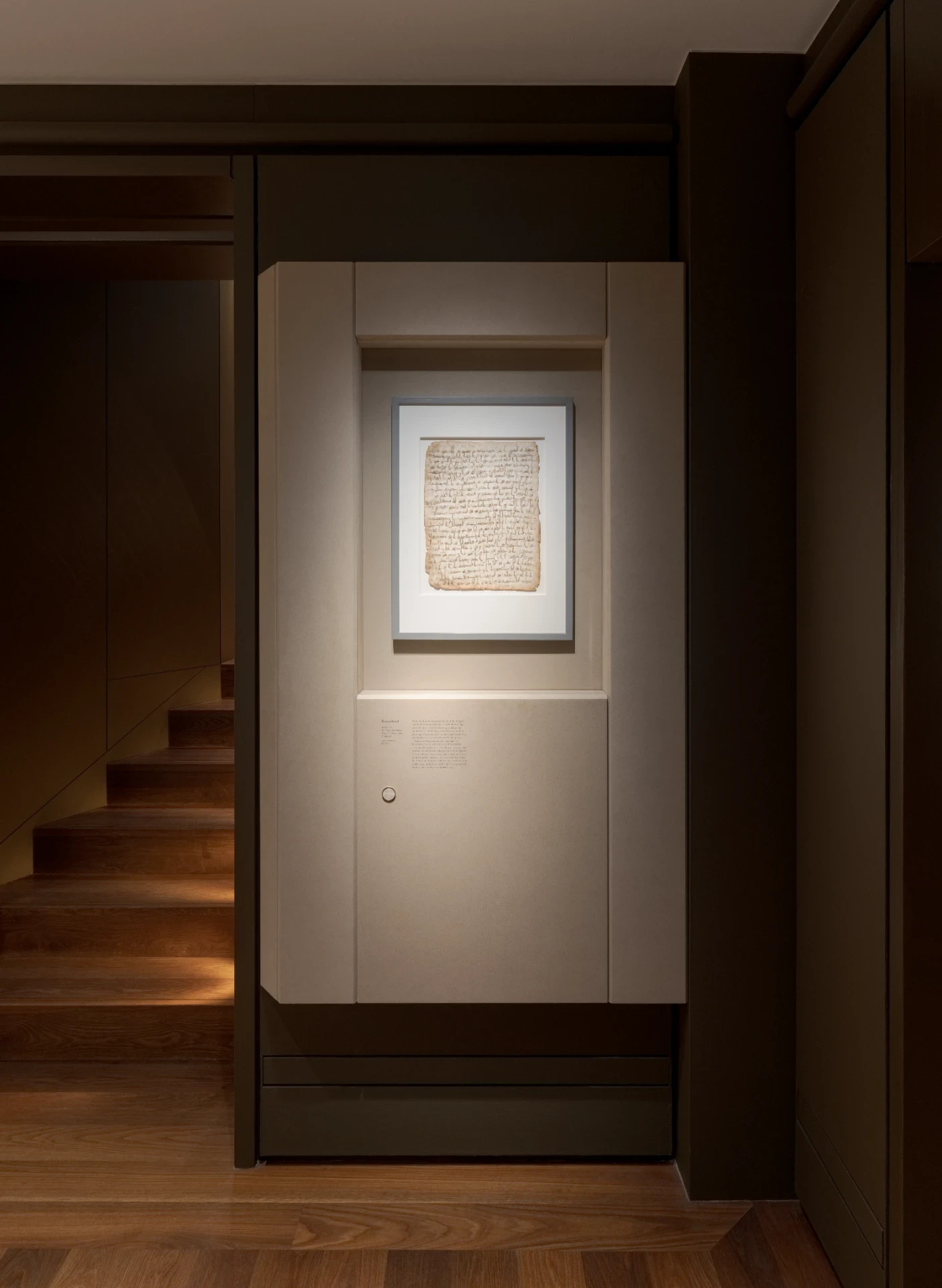 Boasting a table with the same area as a small bedroom, vitrines large enough to encase a standing woman, enough intricate printwork to fill volumes, and over 800 suedette panels, the simple sophistication of this space belies its grander aspects. A collaboration with Mentze Ottenstein architects, we detailed, built and installed this tenebristic exhibition of Arabic artifacts. Being one of the finest collections of Islamic art in the west, the challenge was to build around the highly rigorous material standards to uphold conservation and security. The soft luxury of the displays served as a worthy backdrop to the priceless pieces on display.