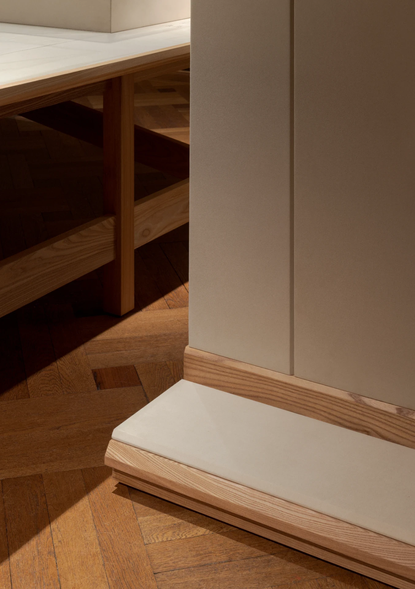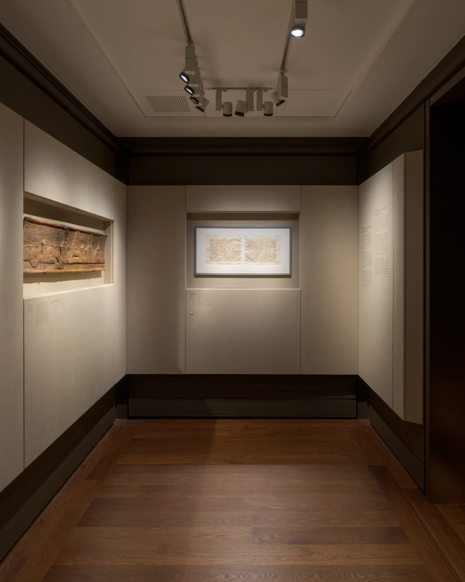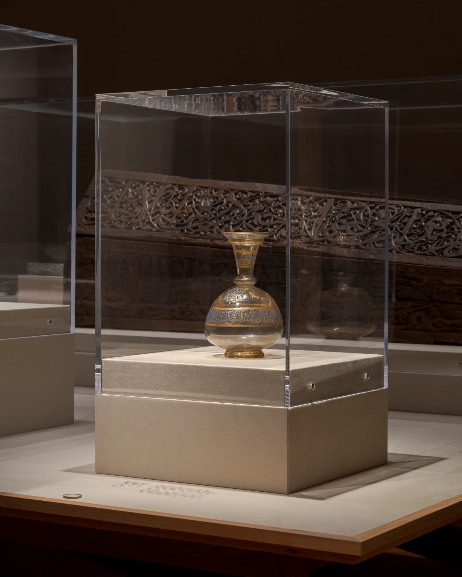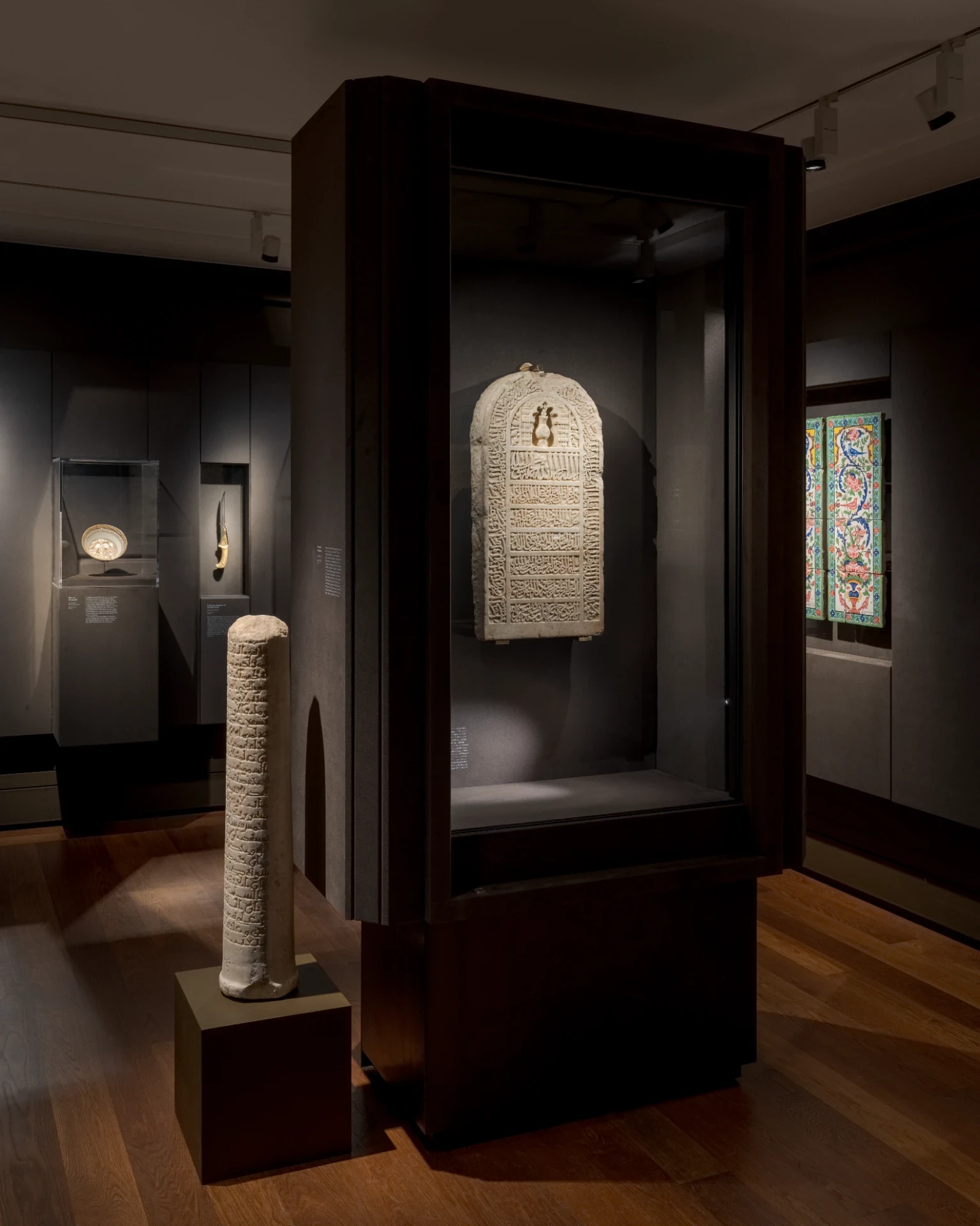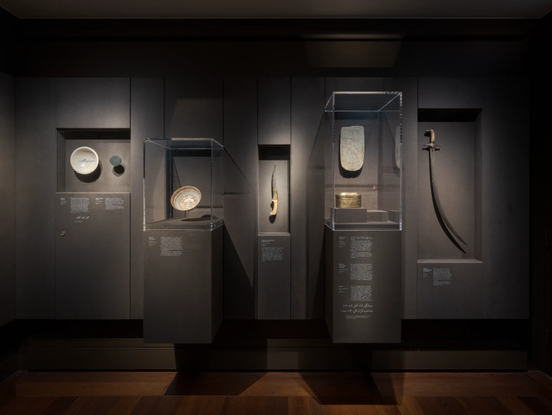 Boasting a table with the same area as a small bedroom, vitrines large enough to encase a standing woman, enough intricate printwork to fill volumes, and over 800 suedette panels, the simple sophistication of this space belies its grander aspects. A collaboration with Mentze Ottenstein architects, we detailed, built and installed this tenebristic exhibition of Arabic artifacts. Being one of the finest collections of Islamic art in the west, the challenge was to build around the highly rigorous material standards to uphold conservation and security. The soft luxury of the displays served as a worthy backdrop to the priceless pieces on display.