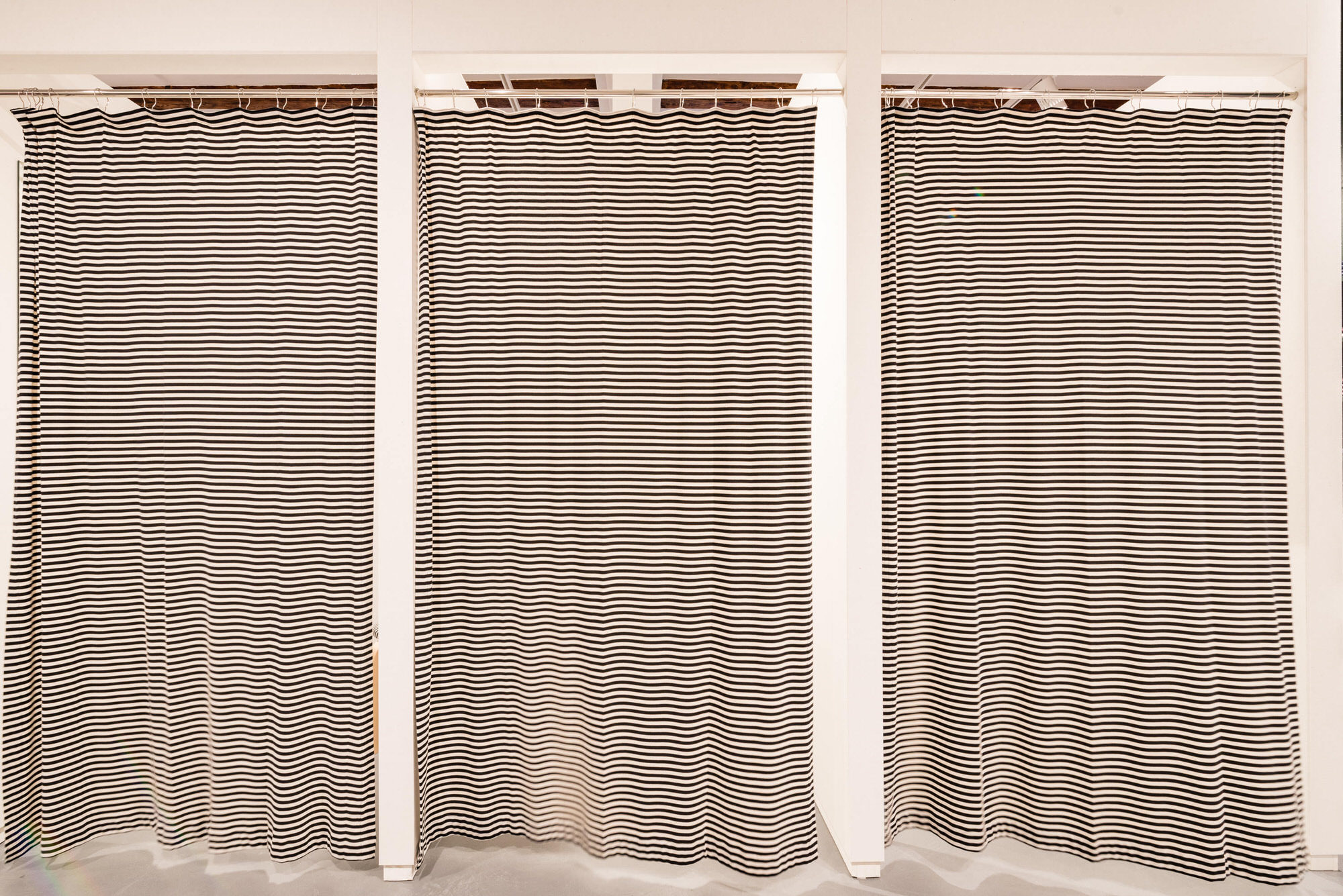 The ceramic counter, a work by the danish artist FOS (Thomas Poulsen), is the centerpiece of the shop. The chrome shelves with LED lighting, chrome ceiling mounted rails and changing rooms clad with Really upcycled textile boards and mirror relates in a deliberate neutral way to the counter.