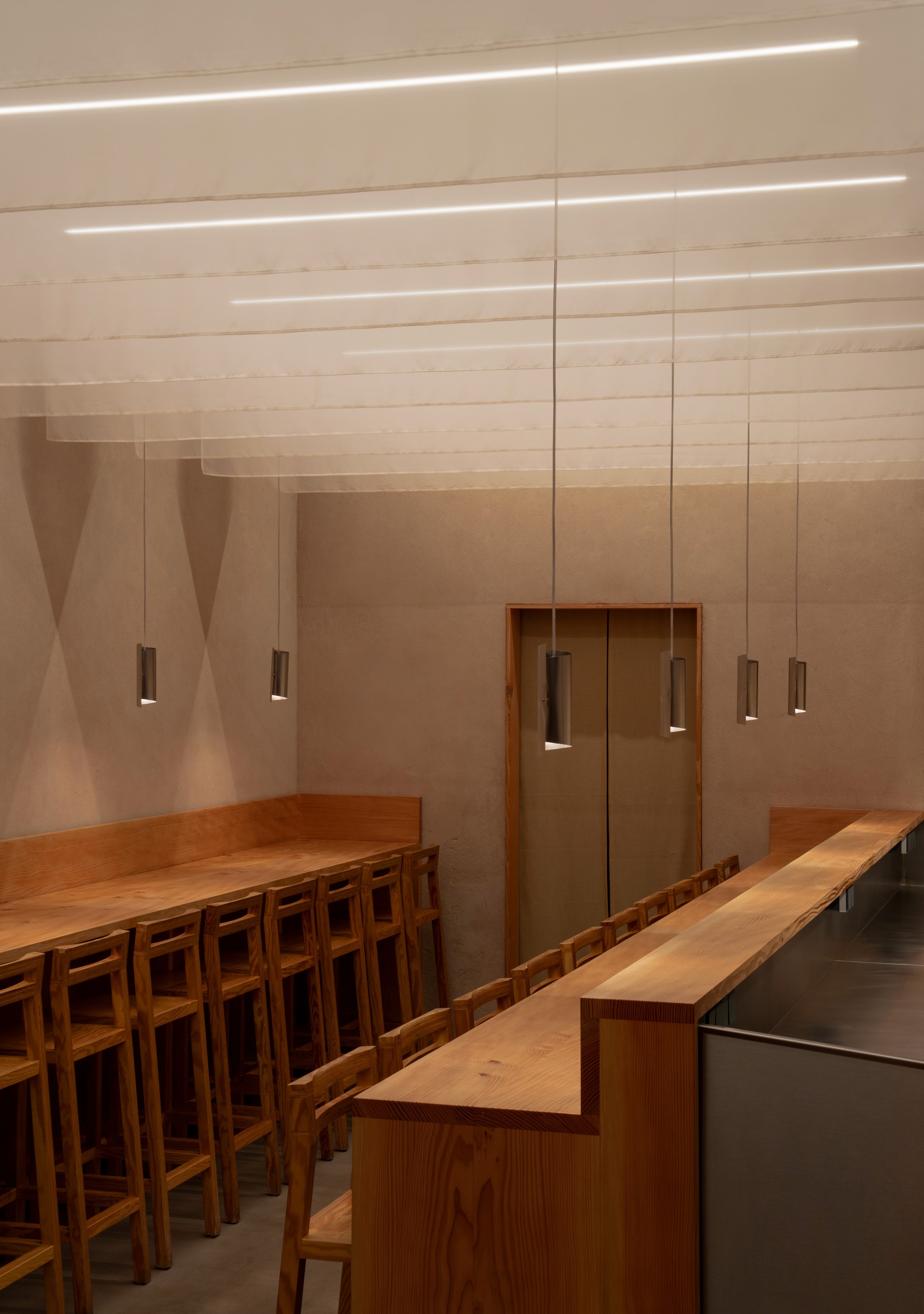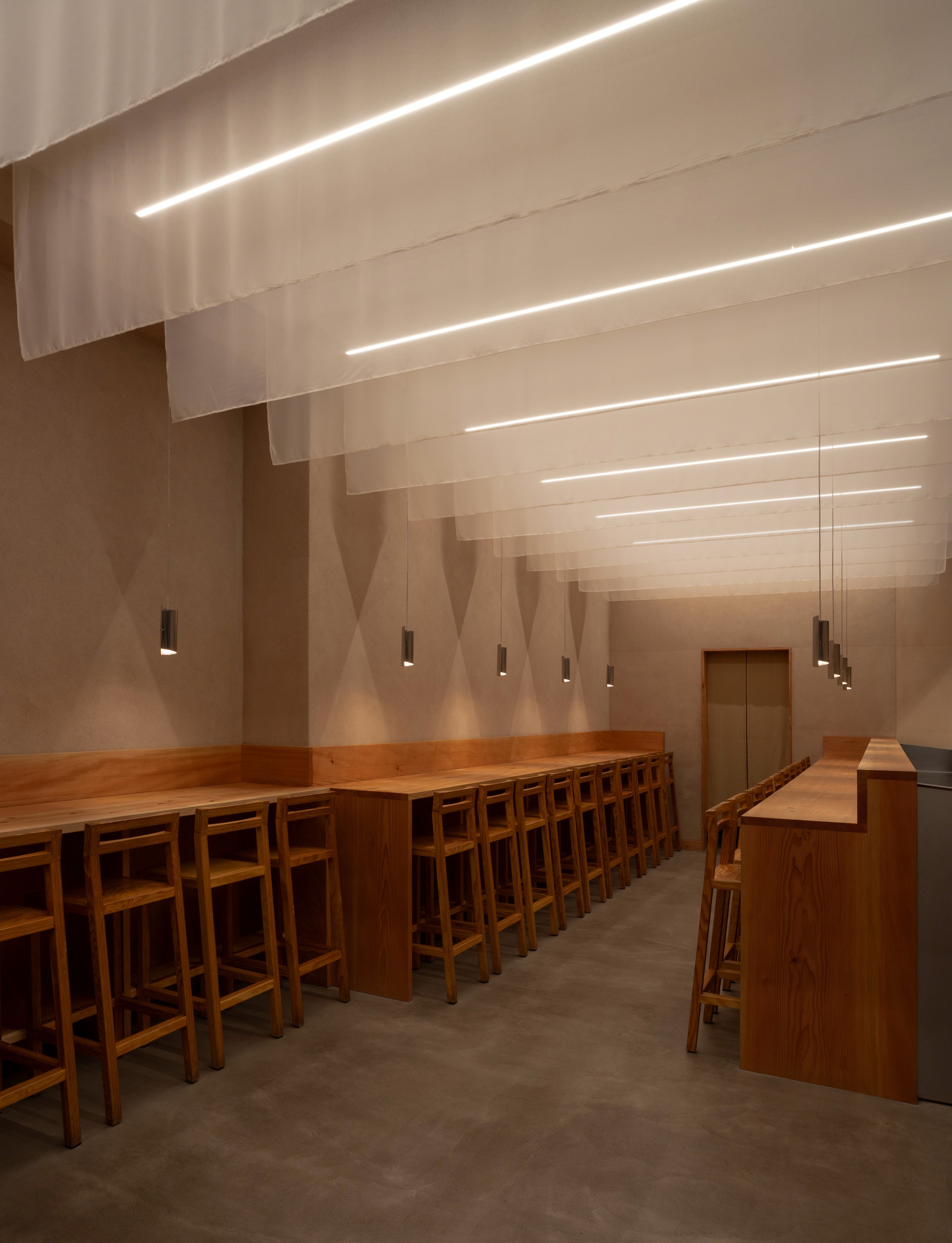 Barlby Carlsson fabricated and installed 25 meters of solid Douglas Fir high counters and wooden millwork for the second Slurp location on Borgergade in Copenhagen, which opened in early 2025.