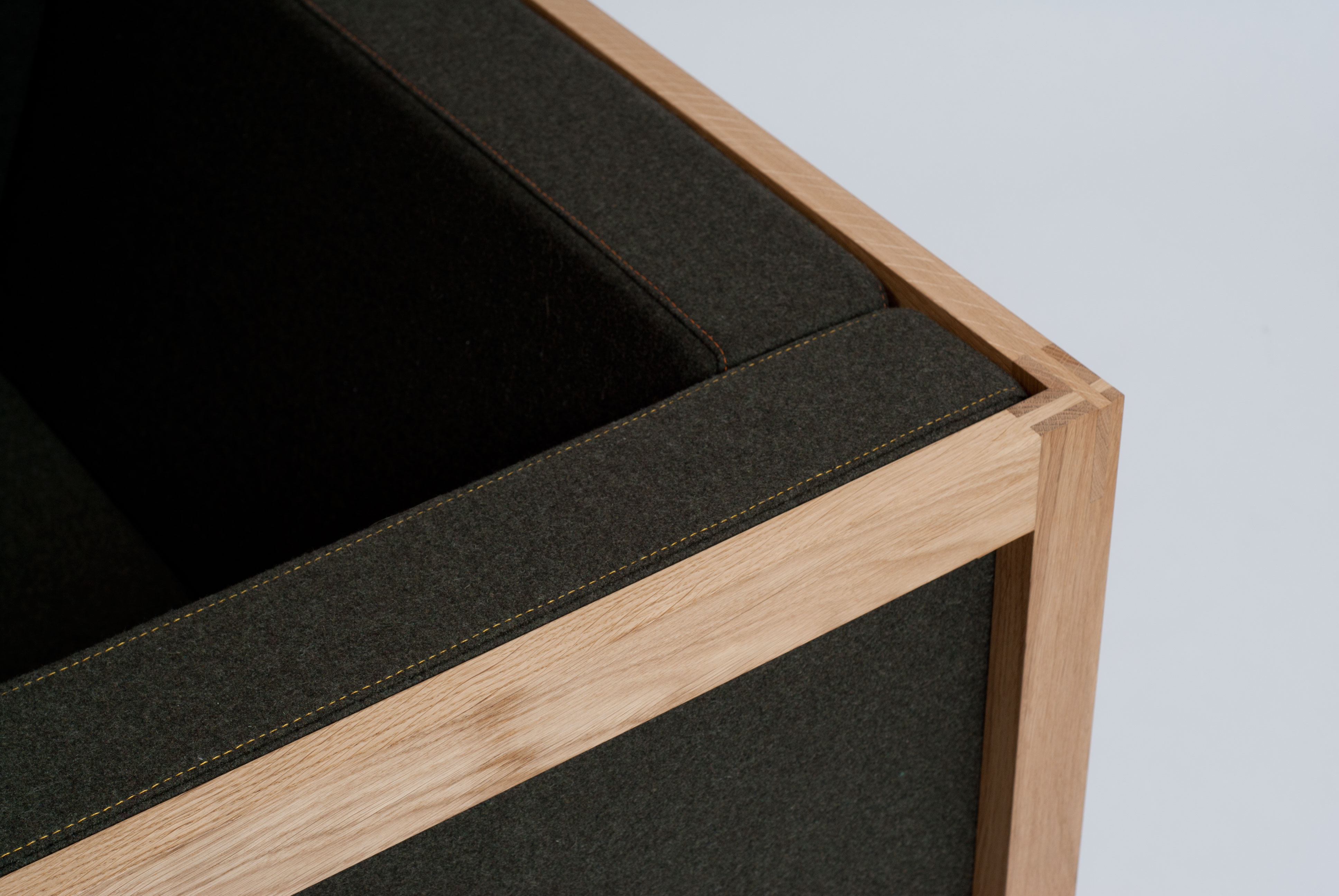 A new interpretation of the classic easy chair, where angular meets softness and gentle meets raw. The chair is a result of Barlby Carlsson’s penchant for proud traditions in woodwork and is produced in our workshop in Copenhagen.